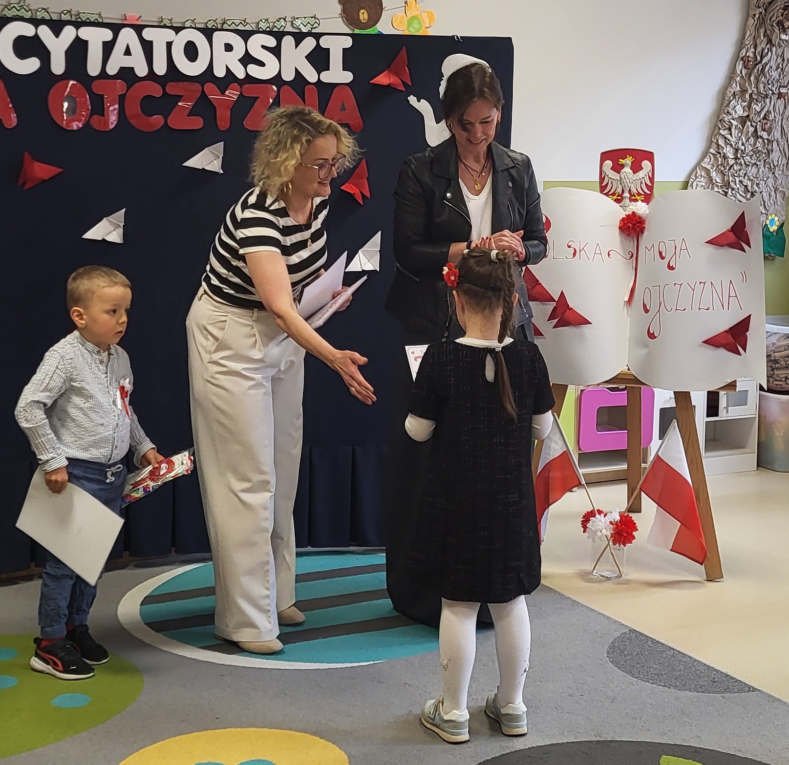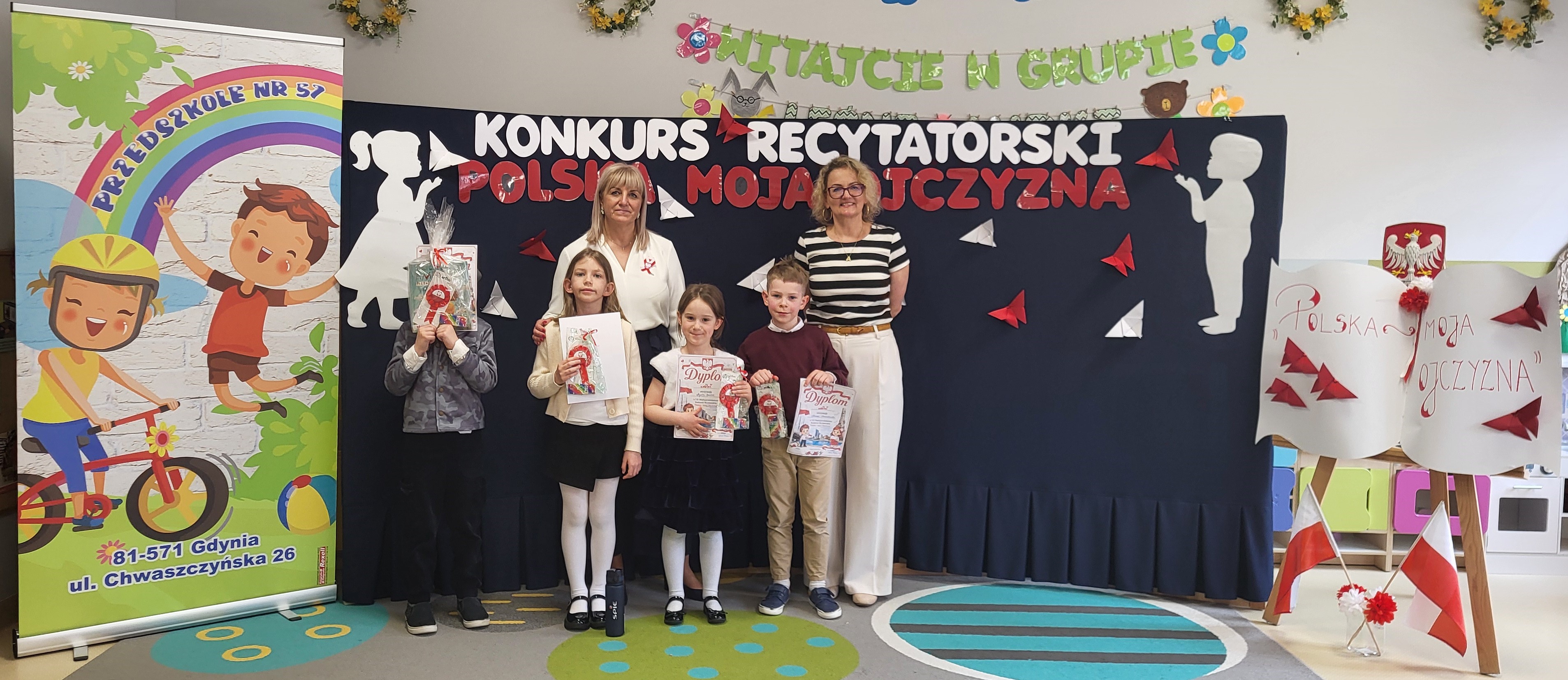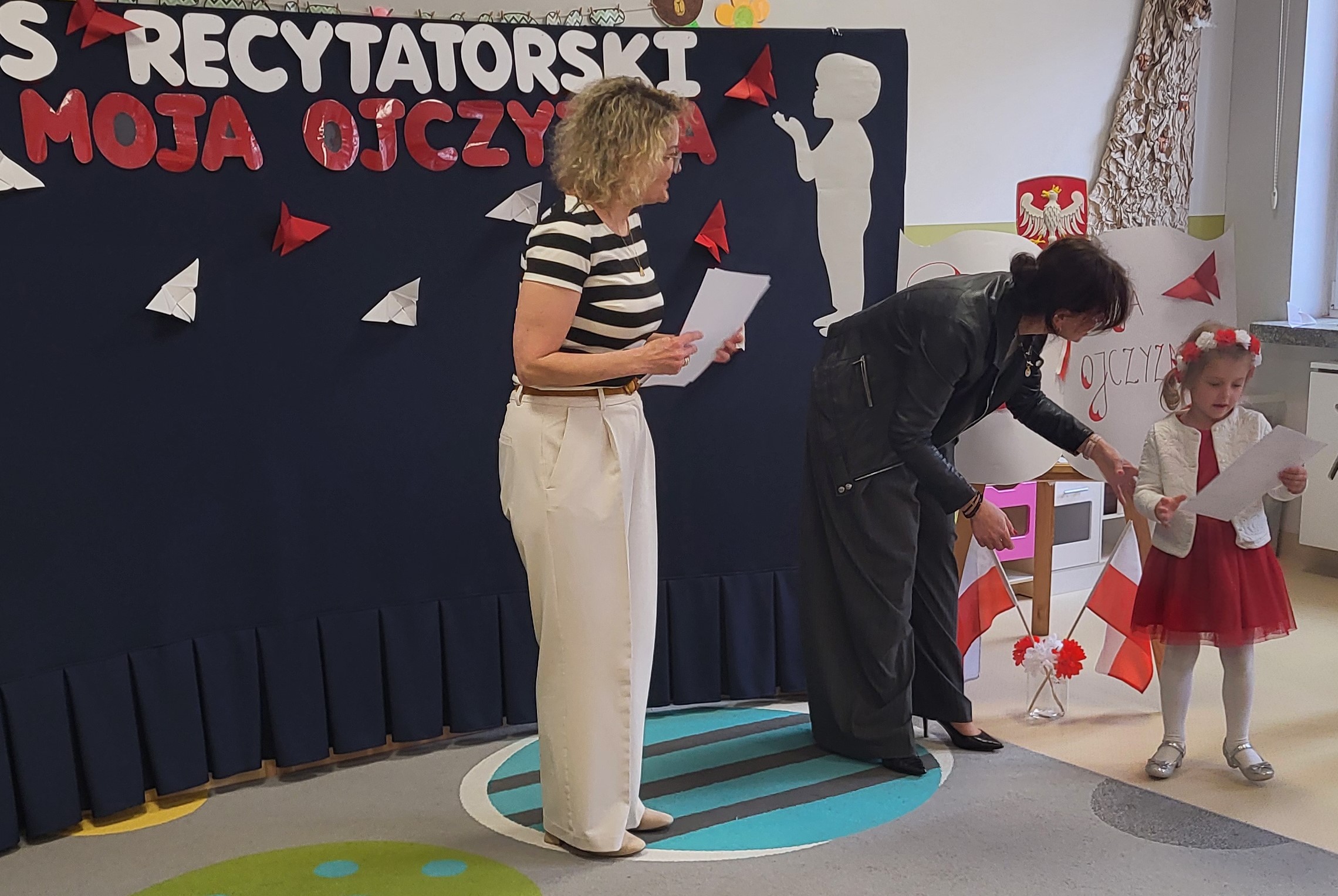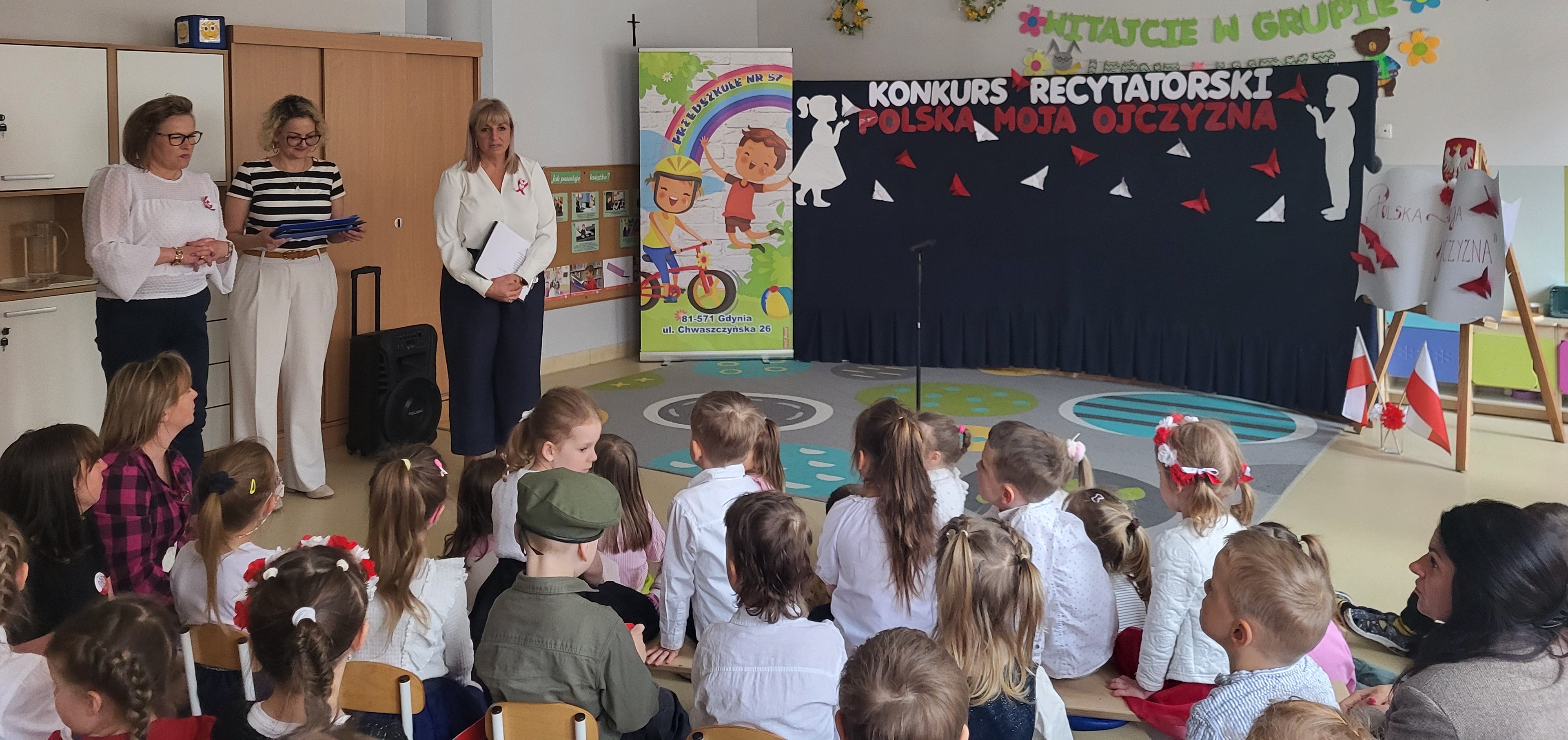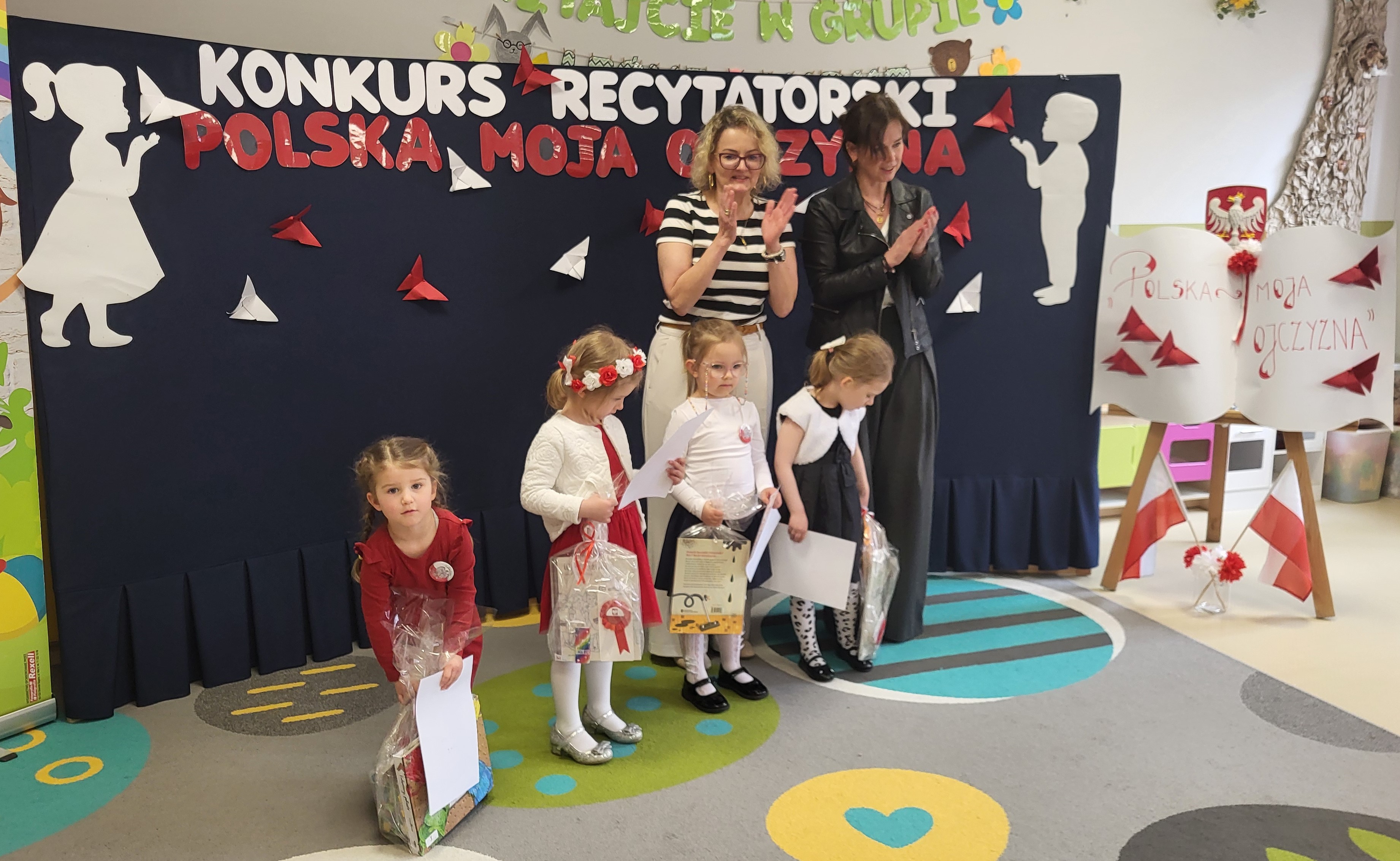 VII Międzyprzedszkolny Konkurs Recytatorski "Polska- moja Ojczyzna" już za nami. To wyjątkowe wydarzenie na stałe wpisało się w tradycję naszego przedszkola. W konkursie wzięły udział dzieci z Przedszkola nr 6, Przedszkola nr 54, Przedszkola nr 57 oraz dzieci z oddziałów "0" SP nr 46. Wszyscy uczestnicy pięknie zaprezentowali swoje utwory, wykazując się odwagą, talentem, wspaniałą pamięcią i interpretacją wybranych wierszy. Jury przyznało nagrody za I, II, III miejsce w dwóch kategoriach wiekowych 3-4 latki oraz 5-7 latki. Wręczono także wyróżnienia oraz dyplomy i upominki za udział. Serdecznie gratulujemy wszystkim uczestnikom konkursu i dziękujemy za piękne chwile pełne wzruszeń i patriotycznych emocji.