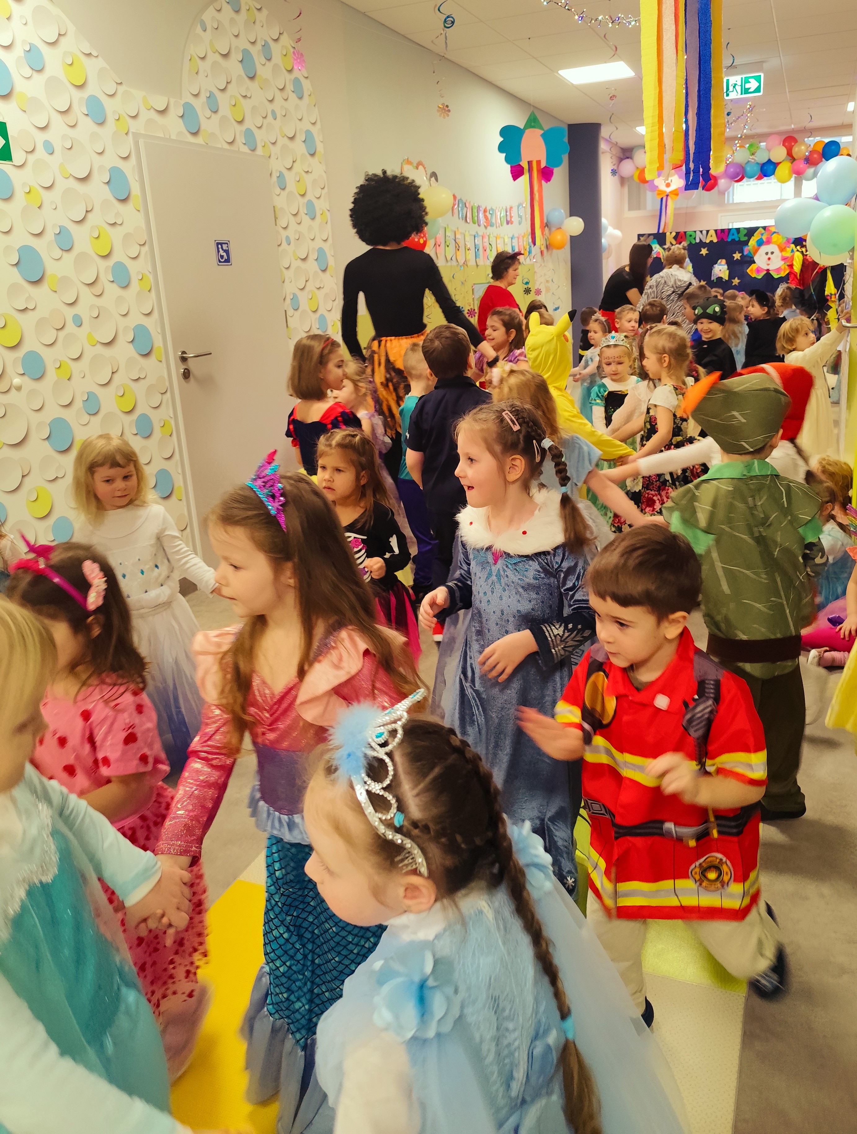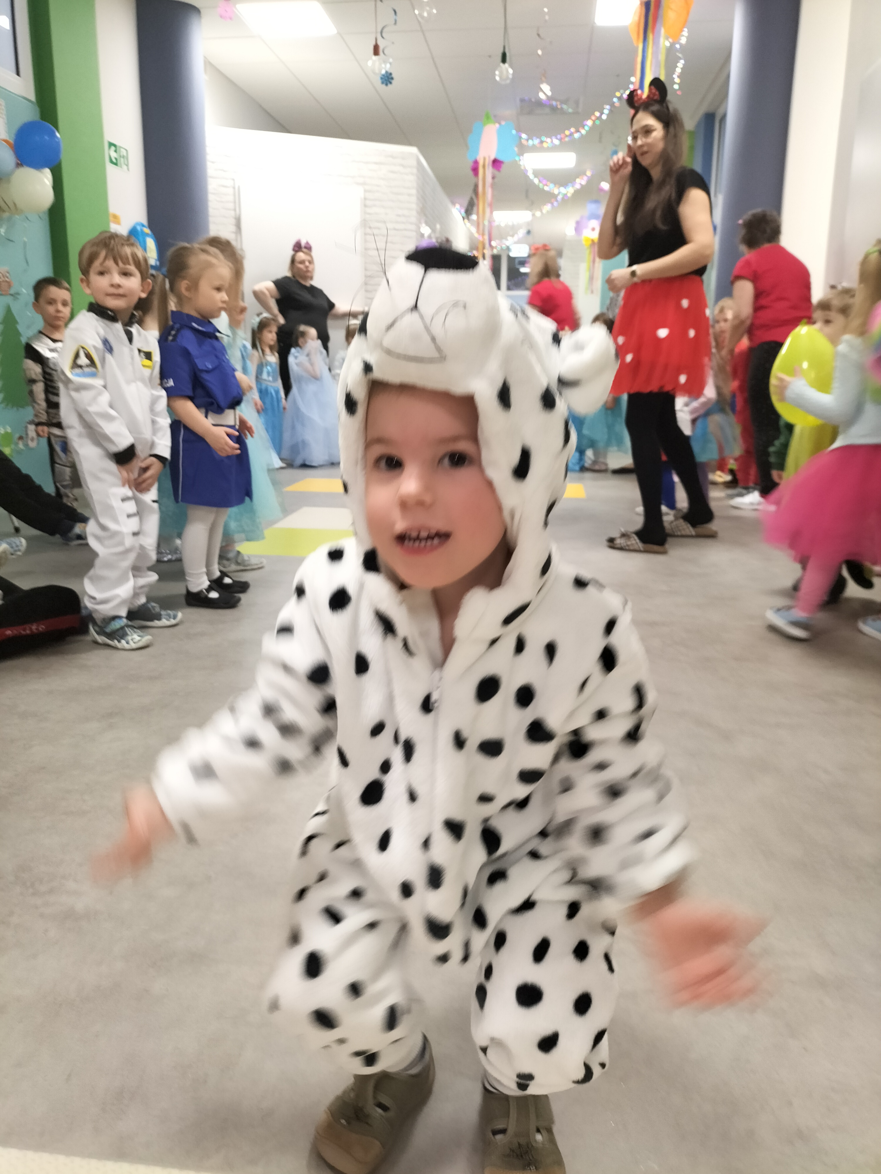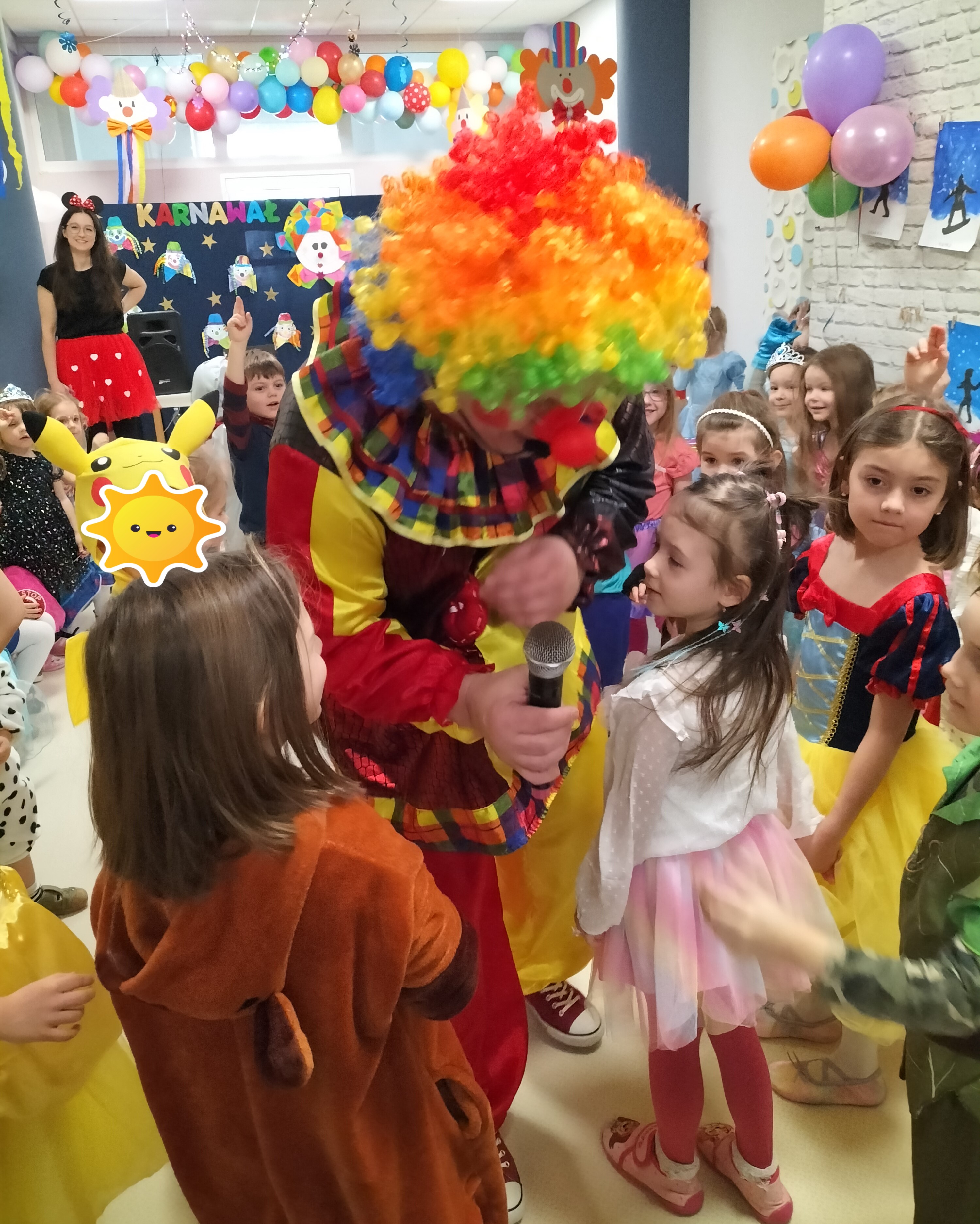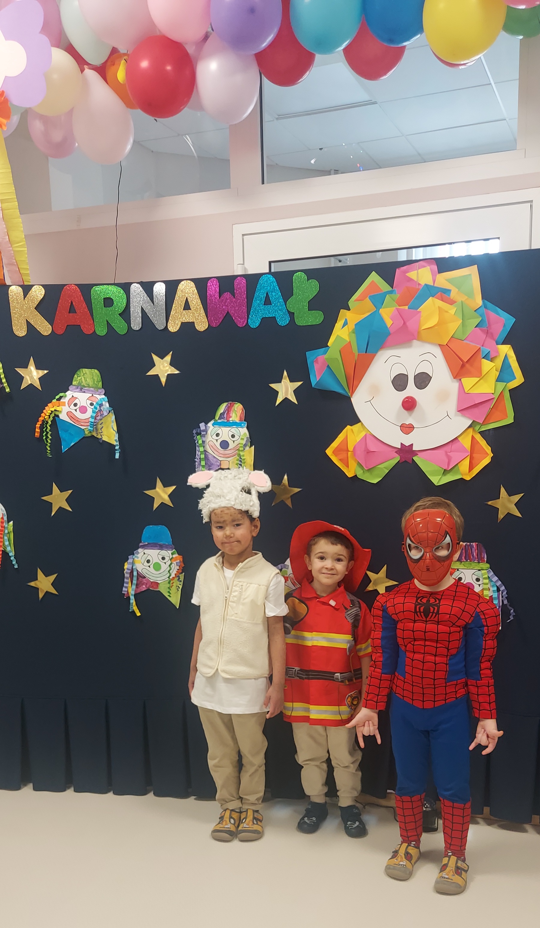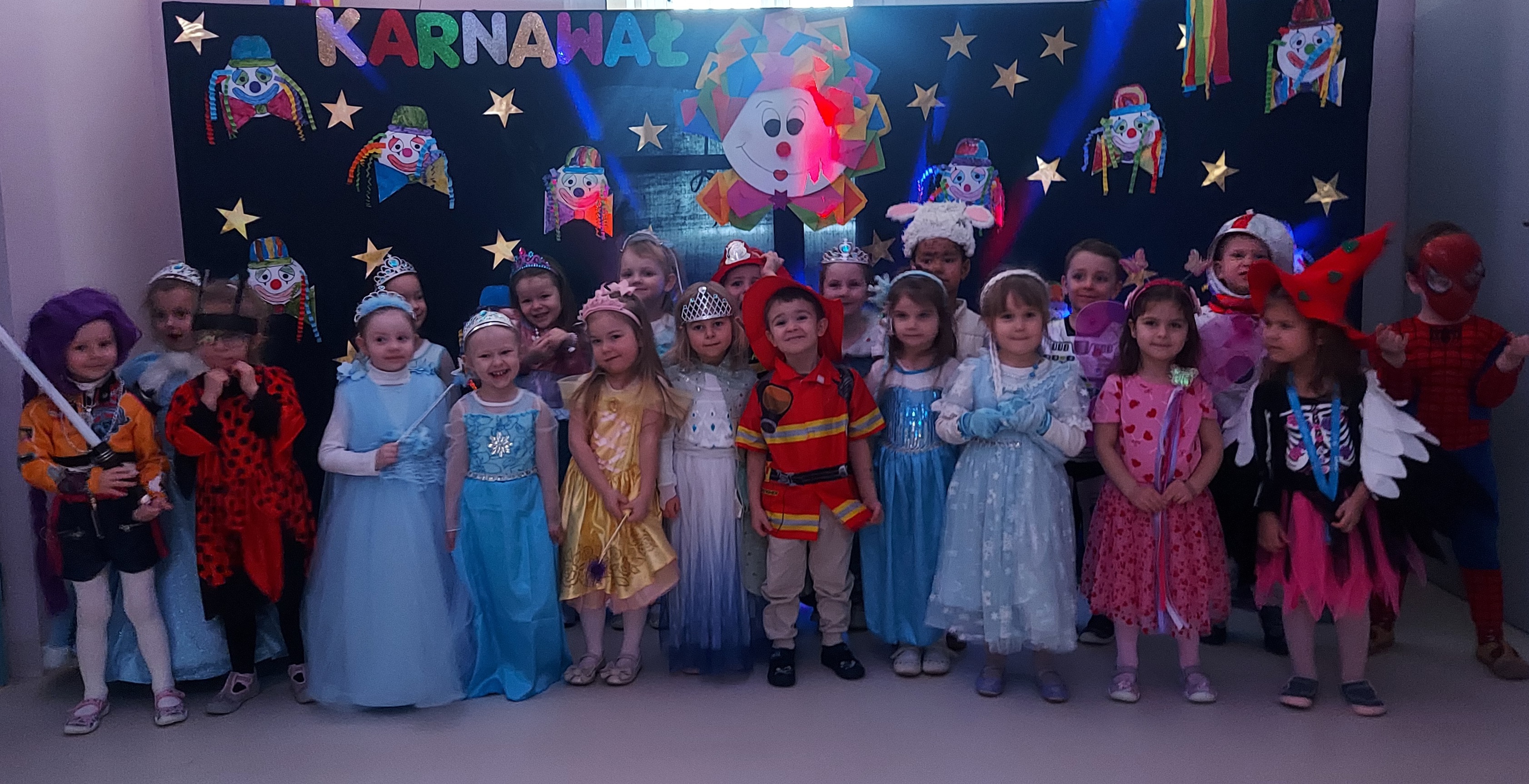 W poniedziałek, 9 lutego, w naszym przedszkolu odbył się bal karnawałowy, który przebiegł w radosnej i uroczystej atmosferze. Wydarzenie poprowadził Pan Artur Kochański - Firma Lokomotywa, zapewniając dzieciom bogaty program obejmujący tańce, zabawy integracyjne oraz konkursy. Dużą atrakcją były efektowne bańki mydlane, które dostarczyły uczestnikom wiele radości. W krótkiej przerwie na dzieci czekał poczęstunek.