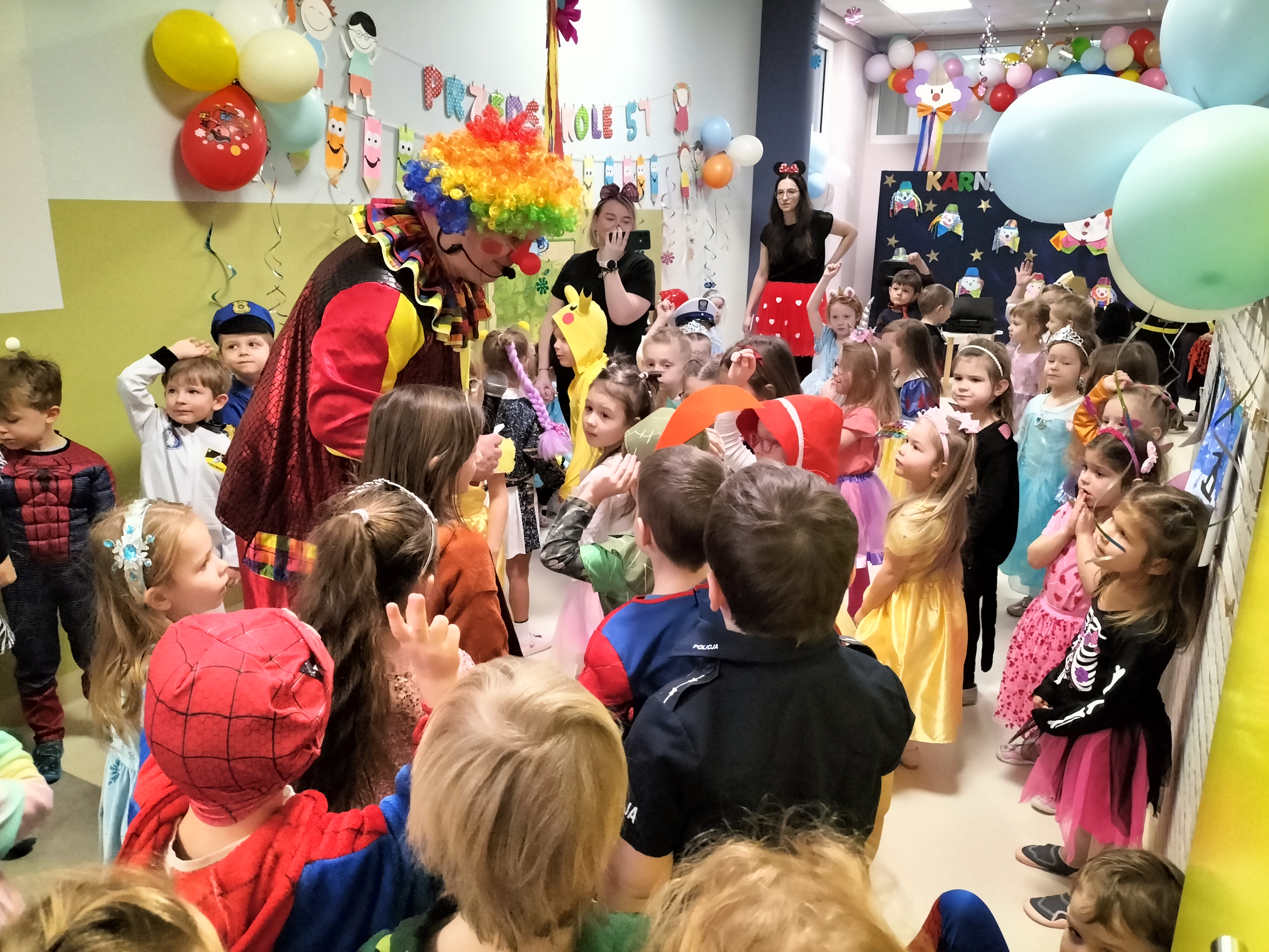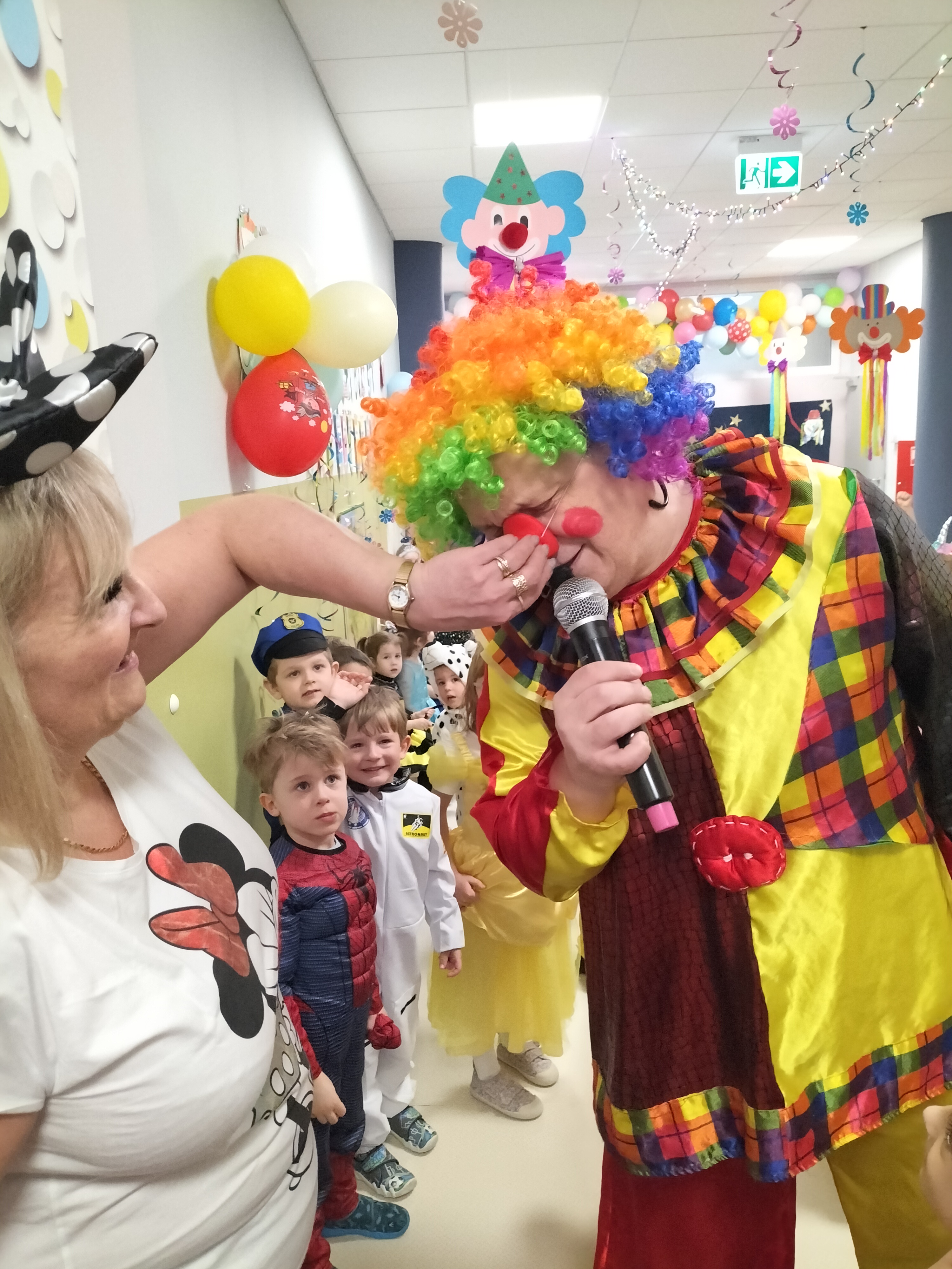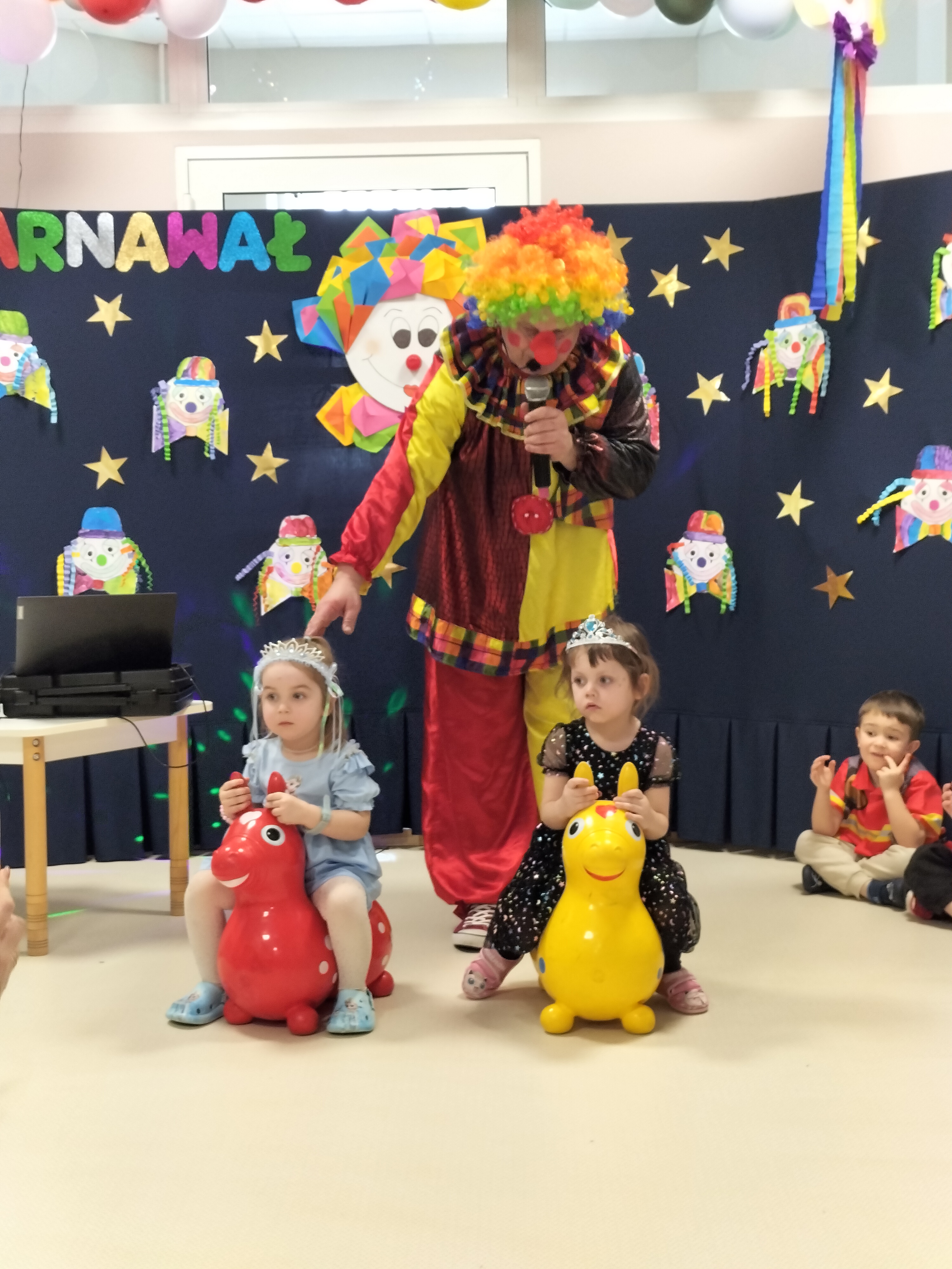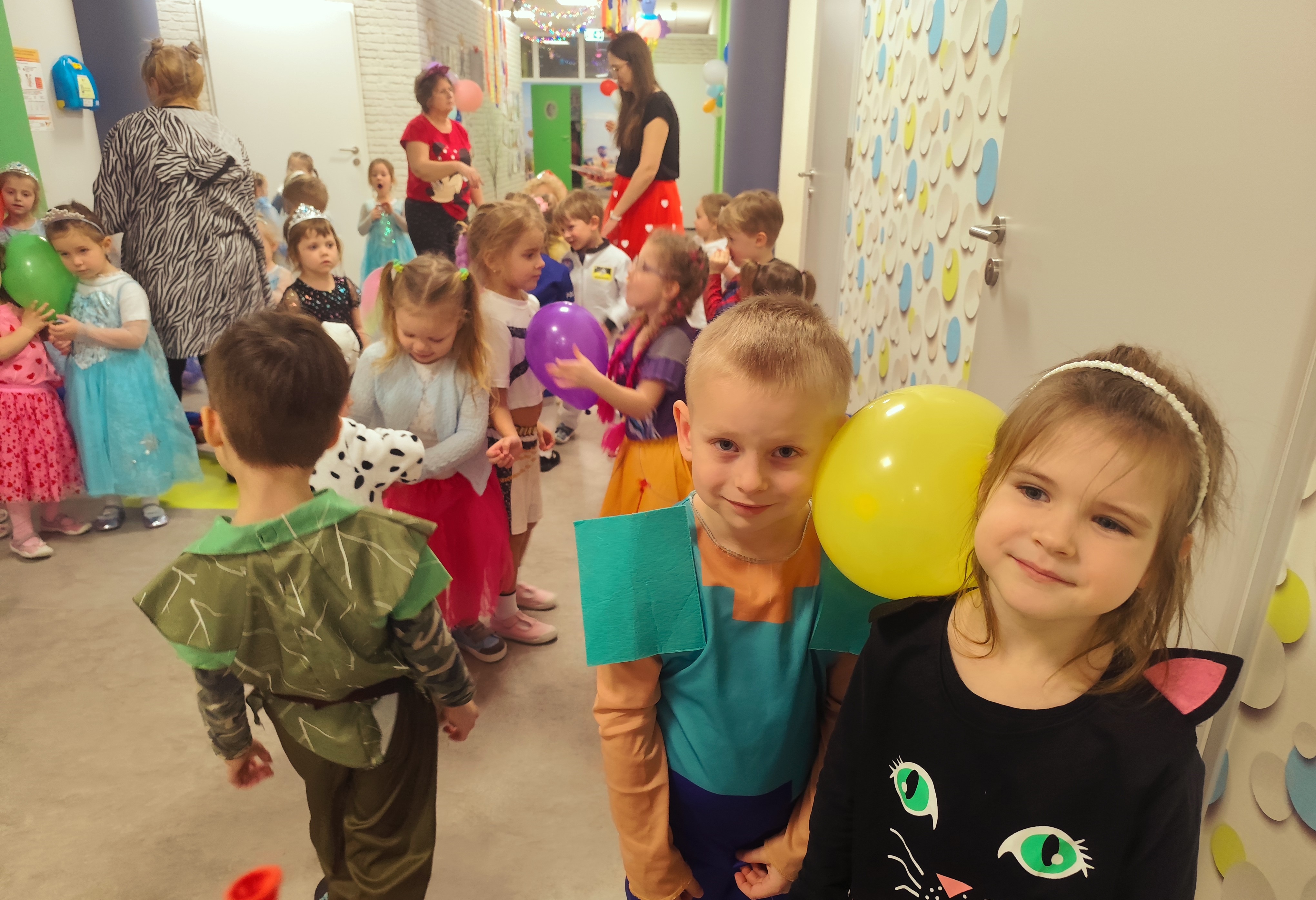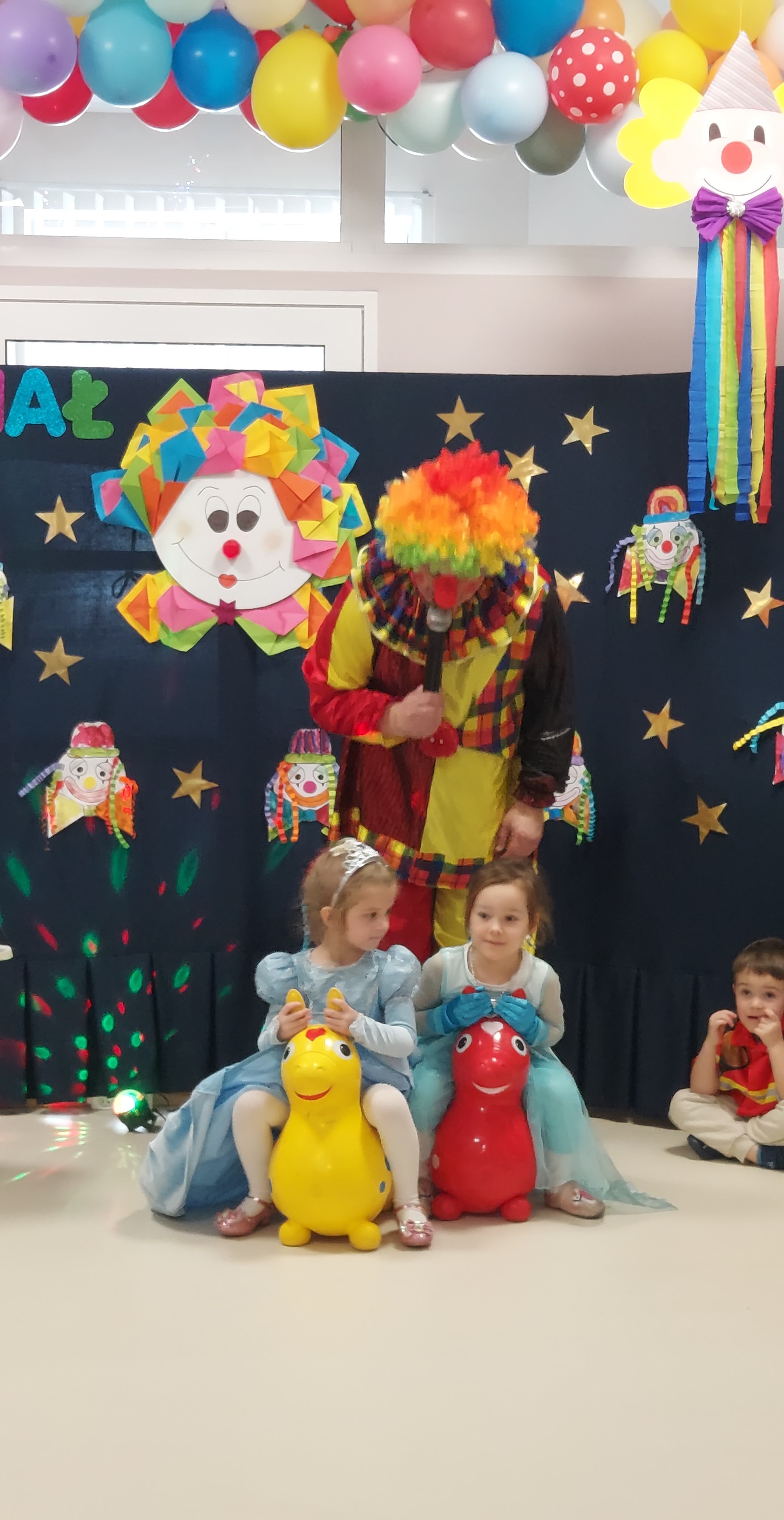W poniedziałek, 9 lutego, w naszym przedszkolu odbył się bal karnawałowy, który przebiegł w radosnej i uroczystej atmosferze. Wydarzenie poprowadził Pan Artur Kochański - Firma Lokomotywa, zapewniając dzieciom bogaty program obejmujący tańce, zabawy integracyjne oraz konkursy. Dużą atrakcją były efektowne bańki mydlane, które dostarczyły uczestnikom wiele radości. W krótkiej przerwie na dzieci czekał poczęstunek.