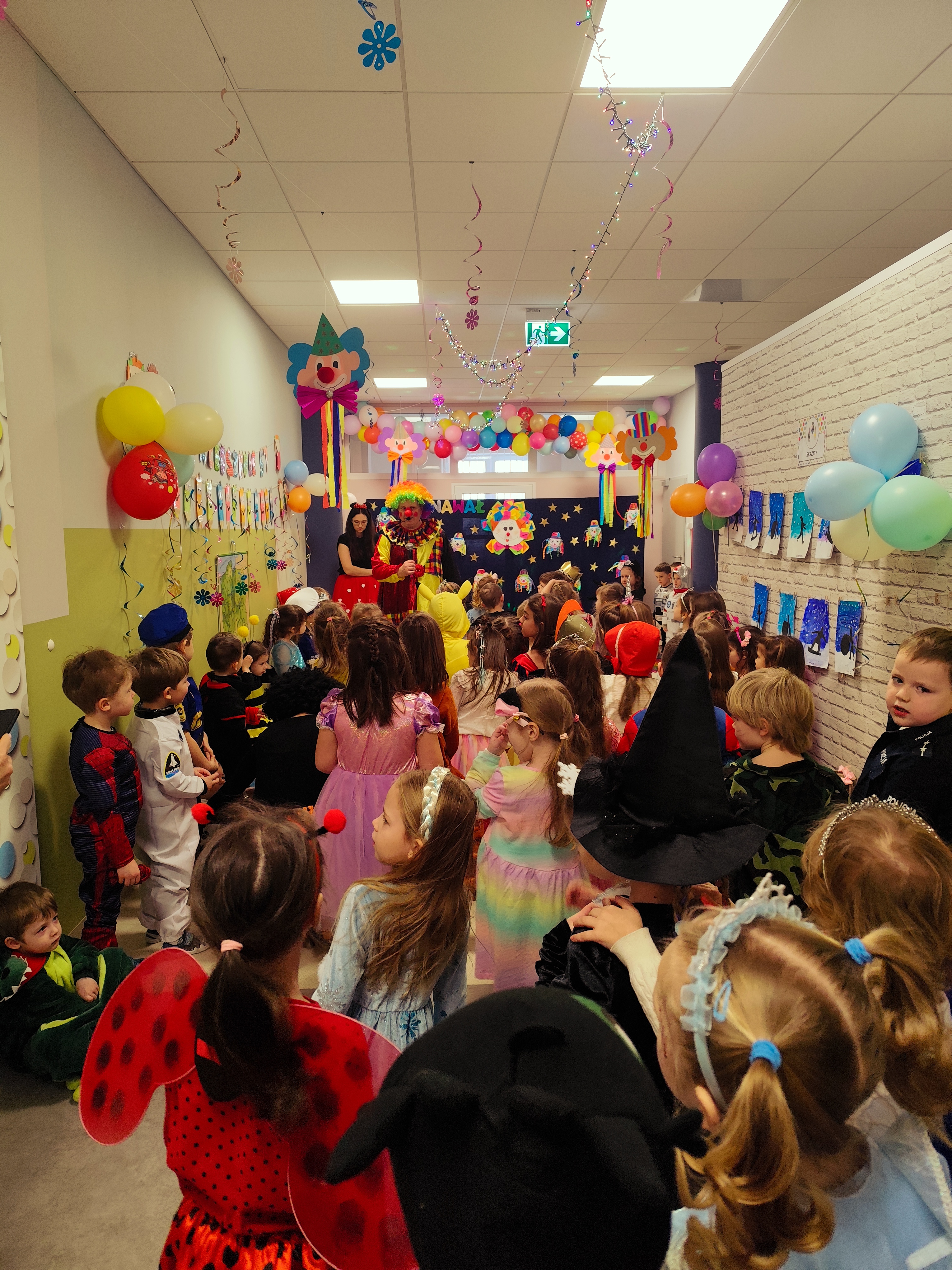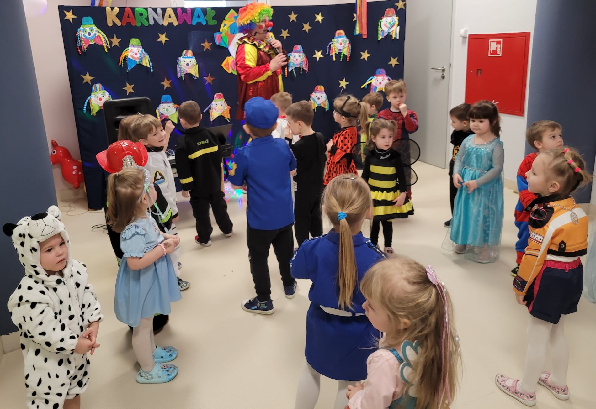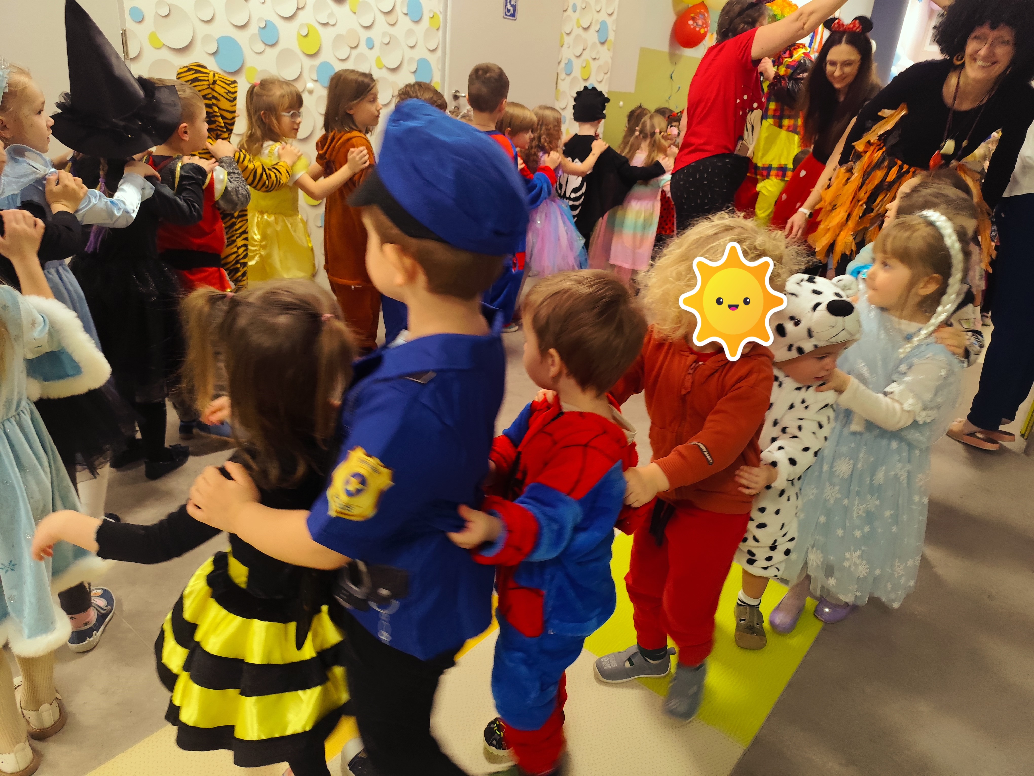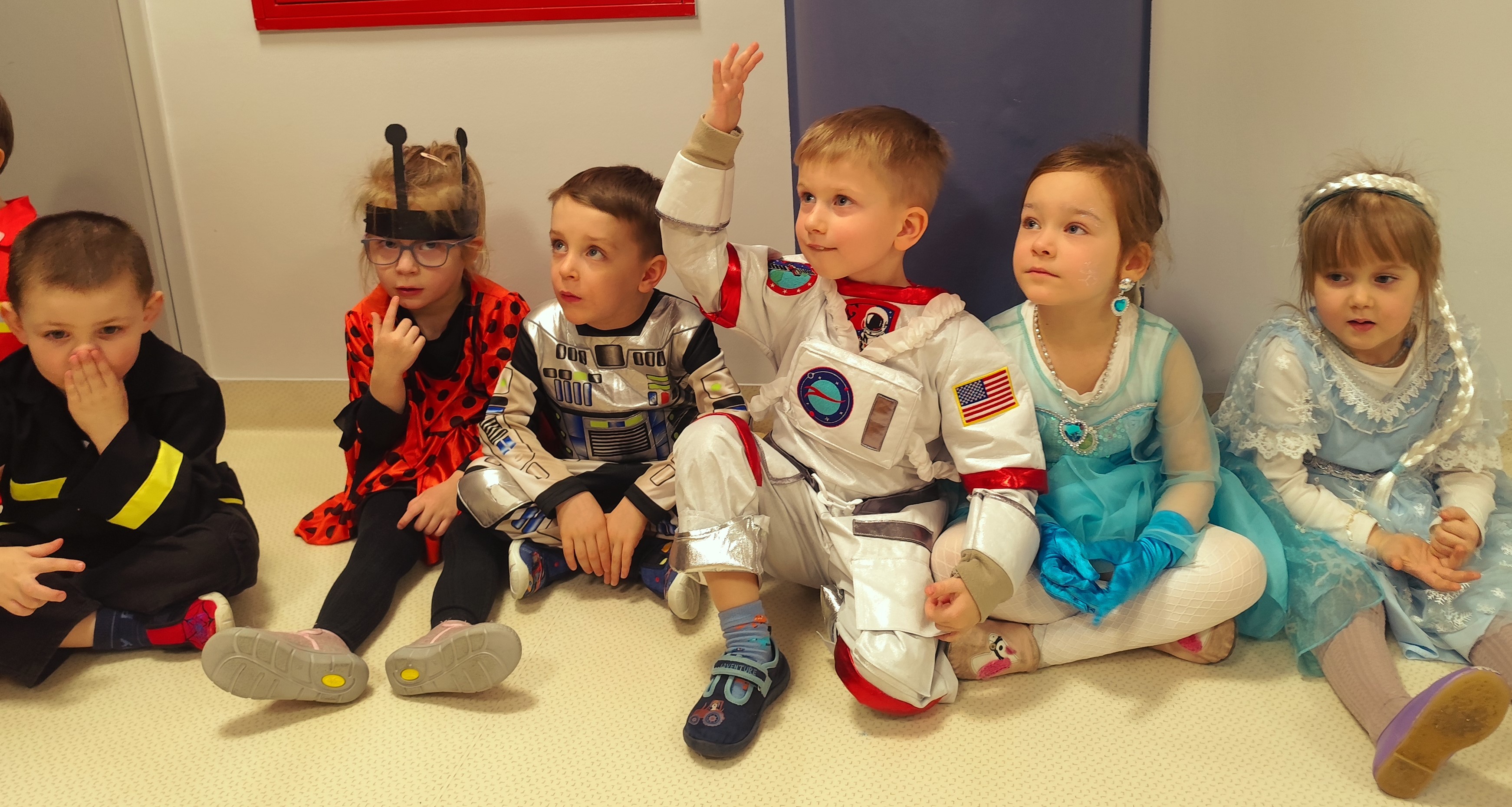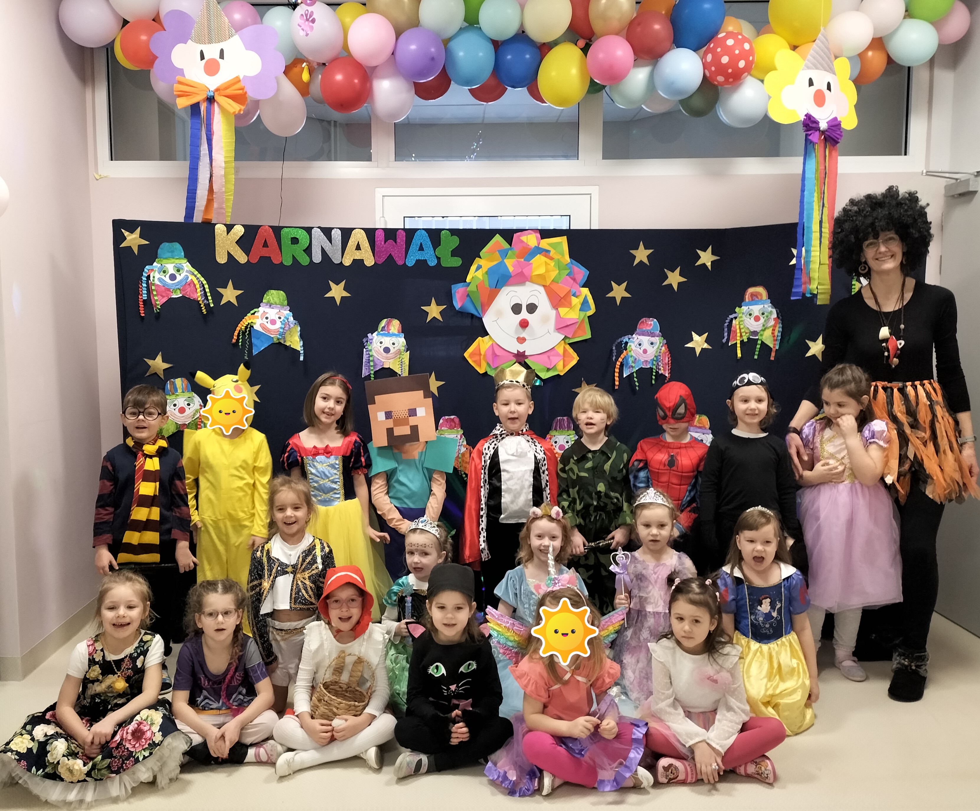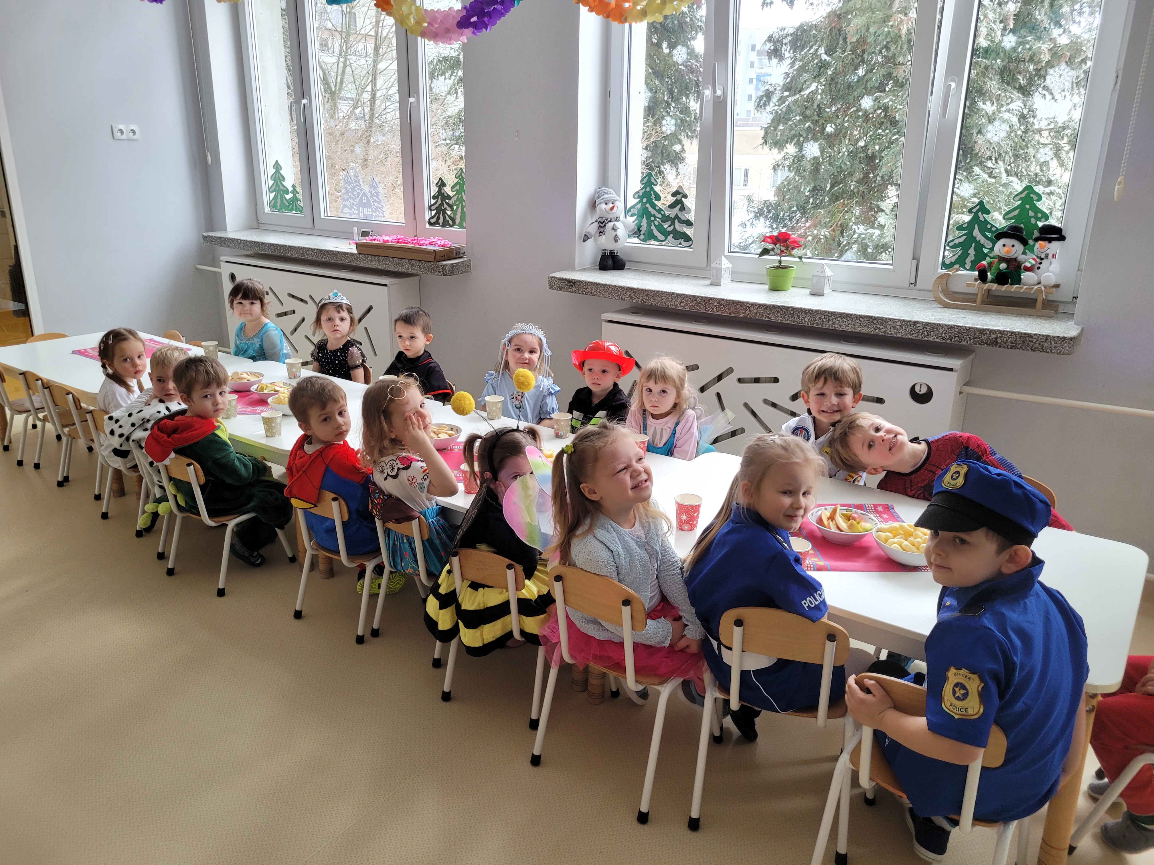 W poniedziałek, 9 lutego, w naszym przedszkolu odbył się bal karnawałowy, który przebiegł w radosnej i uroczystej atmosferze. Wydarzenie poprowadził Pan Artur Kochański - Firma Lokomotywa, zapewniając dzieciom bogaty program obejmujący tańce, zabawy integracyjne oraz konkursy. Dużą atrakcją były efektowne bańki mydlane, które dostarczyły uczestnikom wiele radości. W krótkiej przerwie na dzieci czekał poczęstunek.