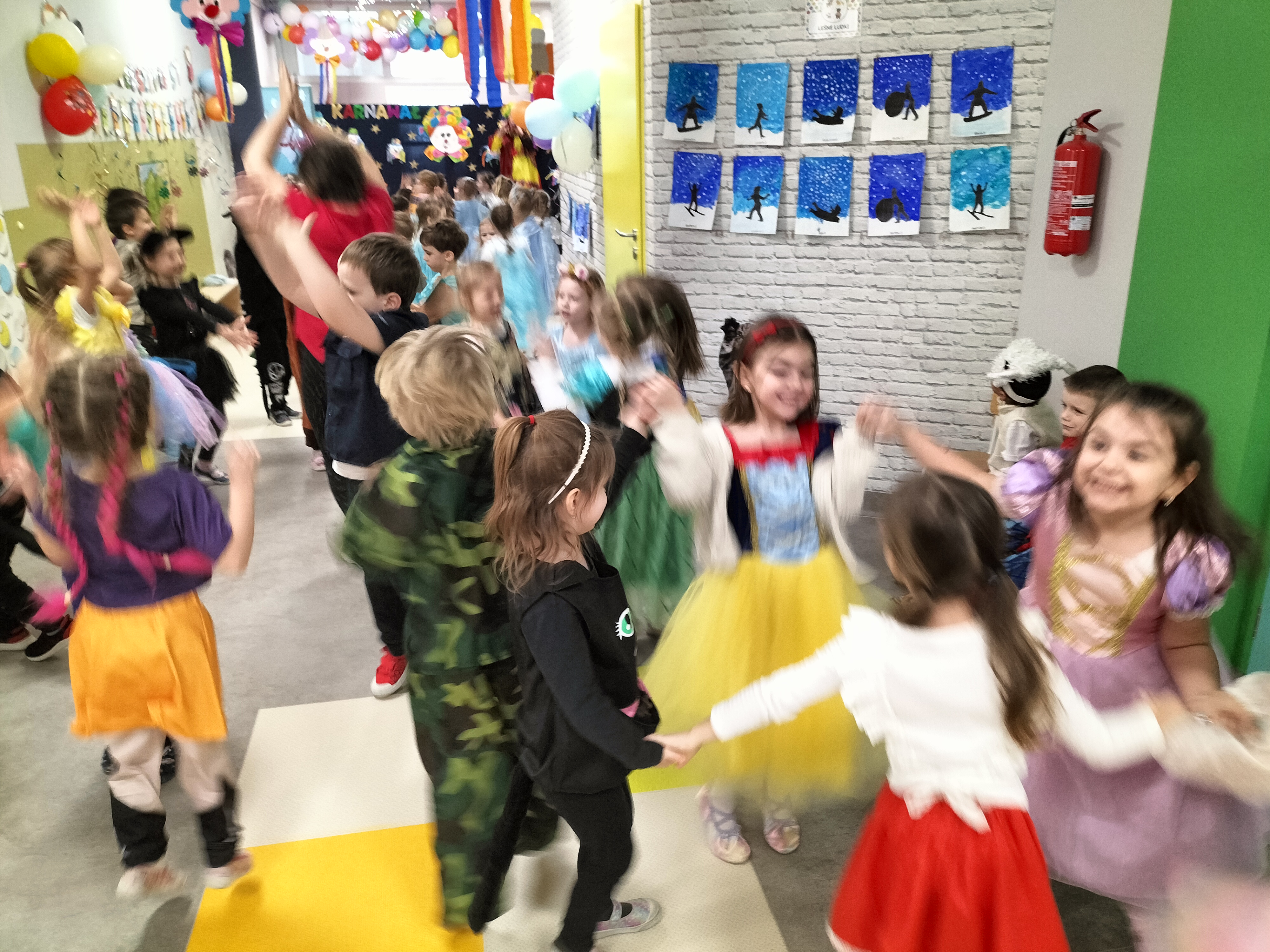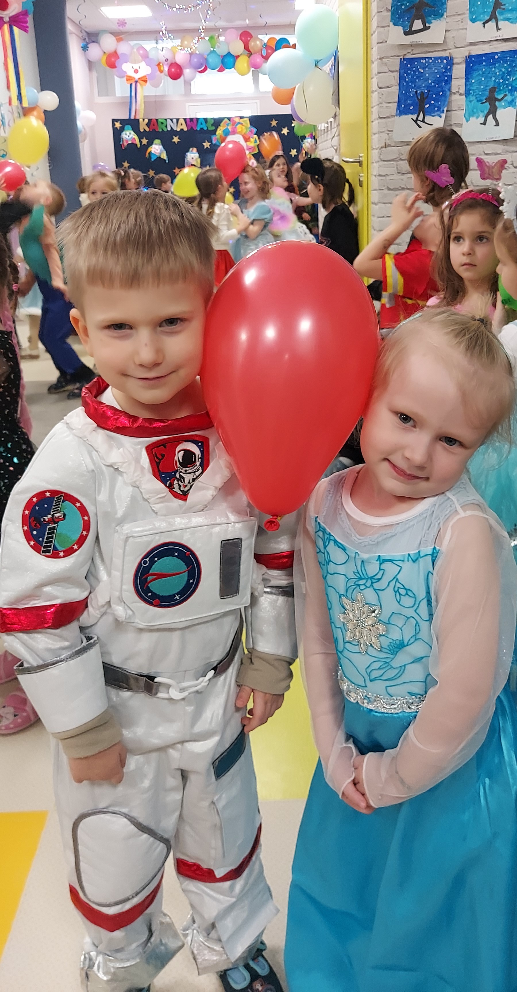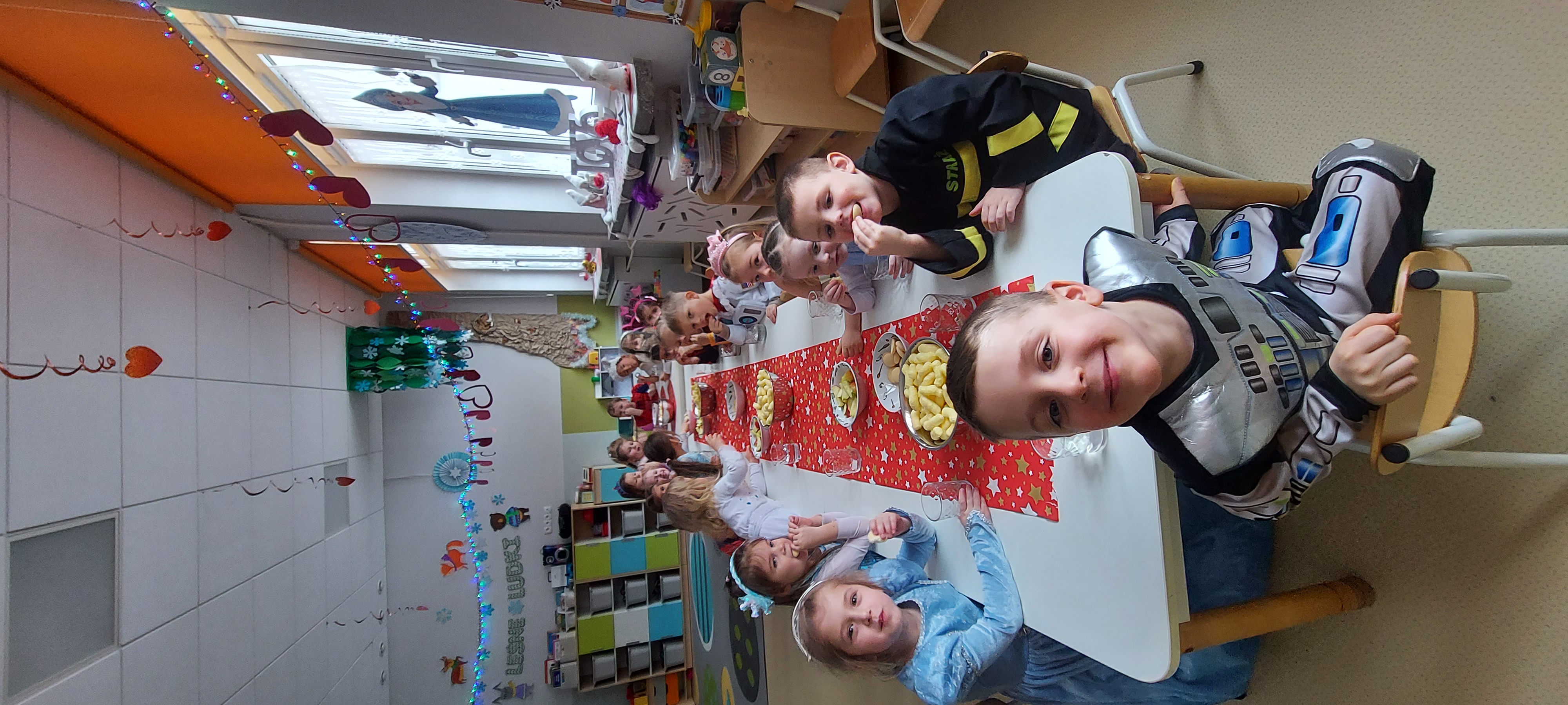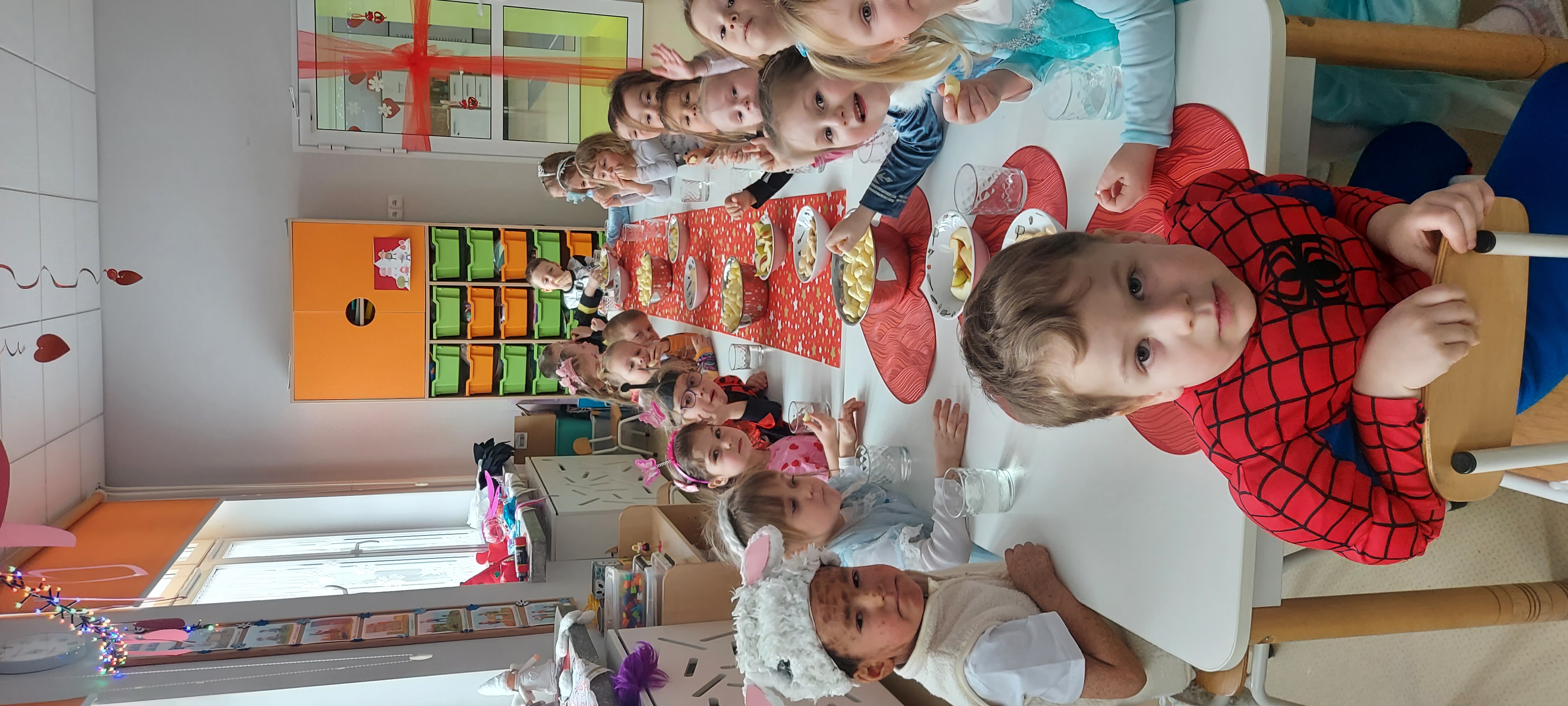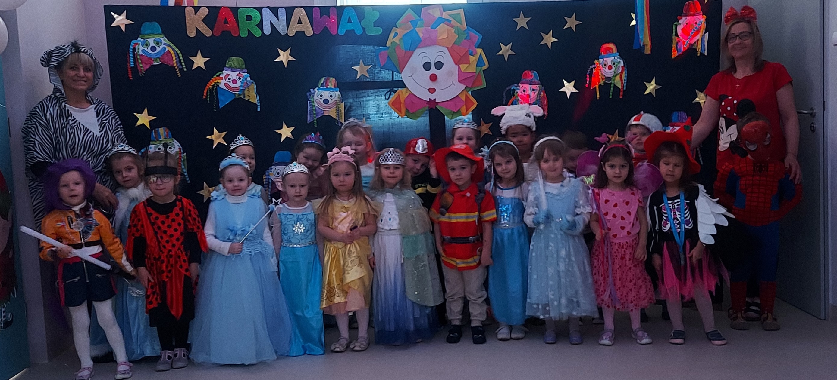 W poniedziałek, 9 lutego, w naszym przedszkolu odbył się bal karnawałowy, który przebiegł w radosnej i uroczystej atmosferze. Wydarzenie poprowadził Pan Artur Kochański - Firma Lokomotywa, zapewniając dzieciom bogaty program obejmujący tańce, zabawy integracyjne oraz konkursy. Dużą atrakcją były efektowne bańki mydlane, które dostarczyły uczestnikom wiele radości. W krótkiej przerwie na dzieci czekał poczęstunek.