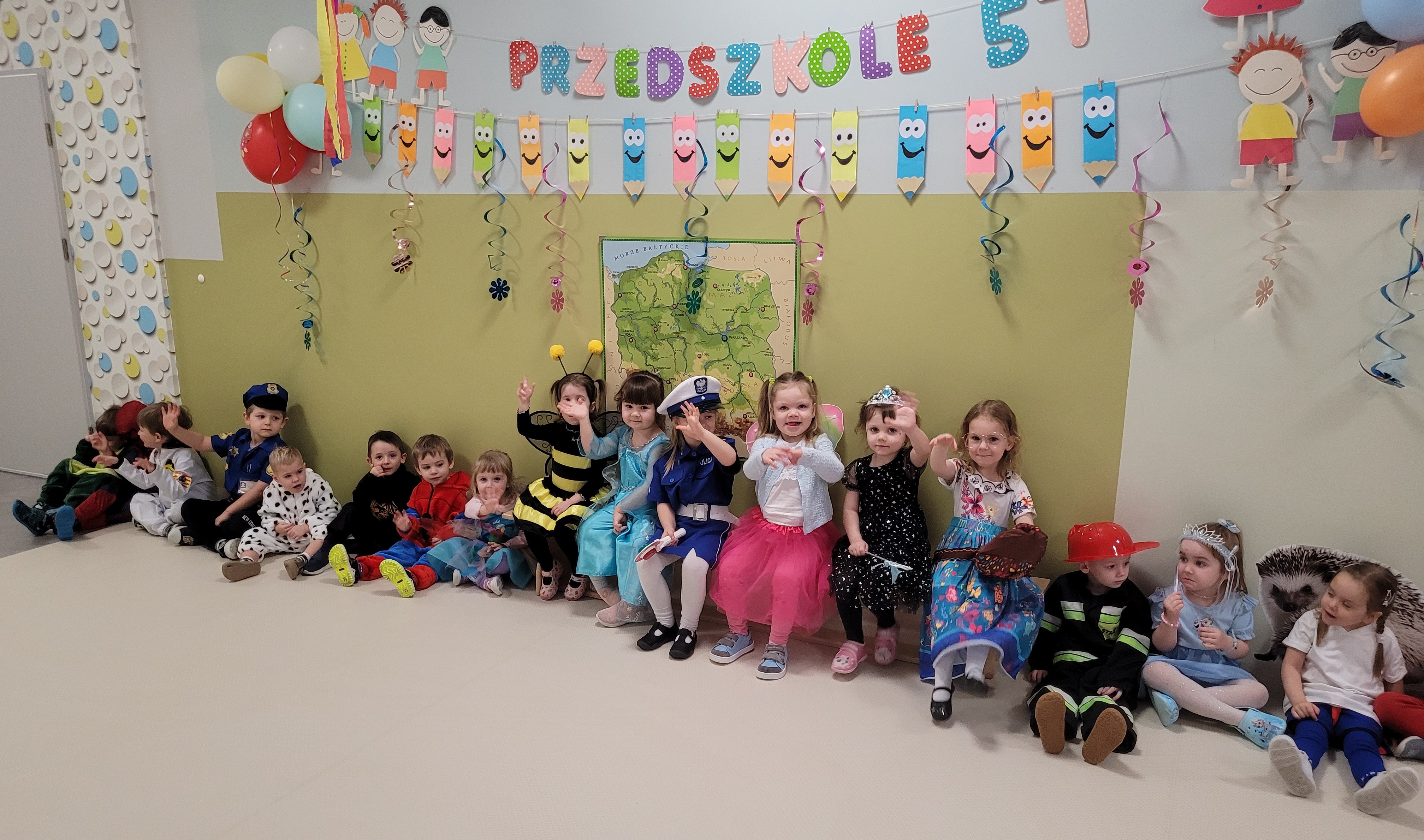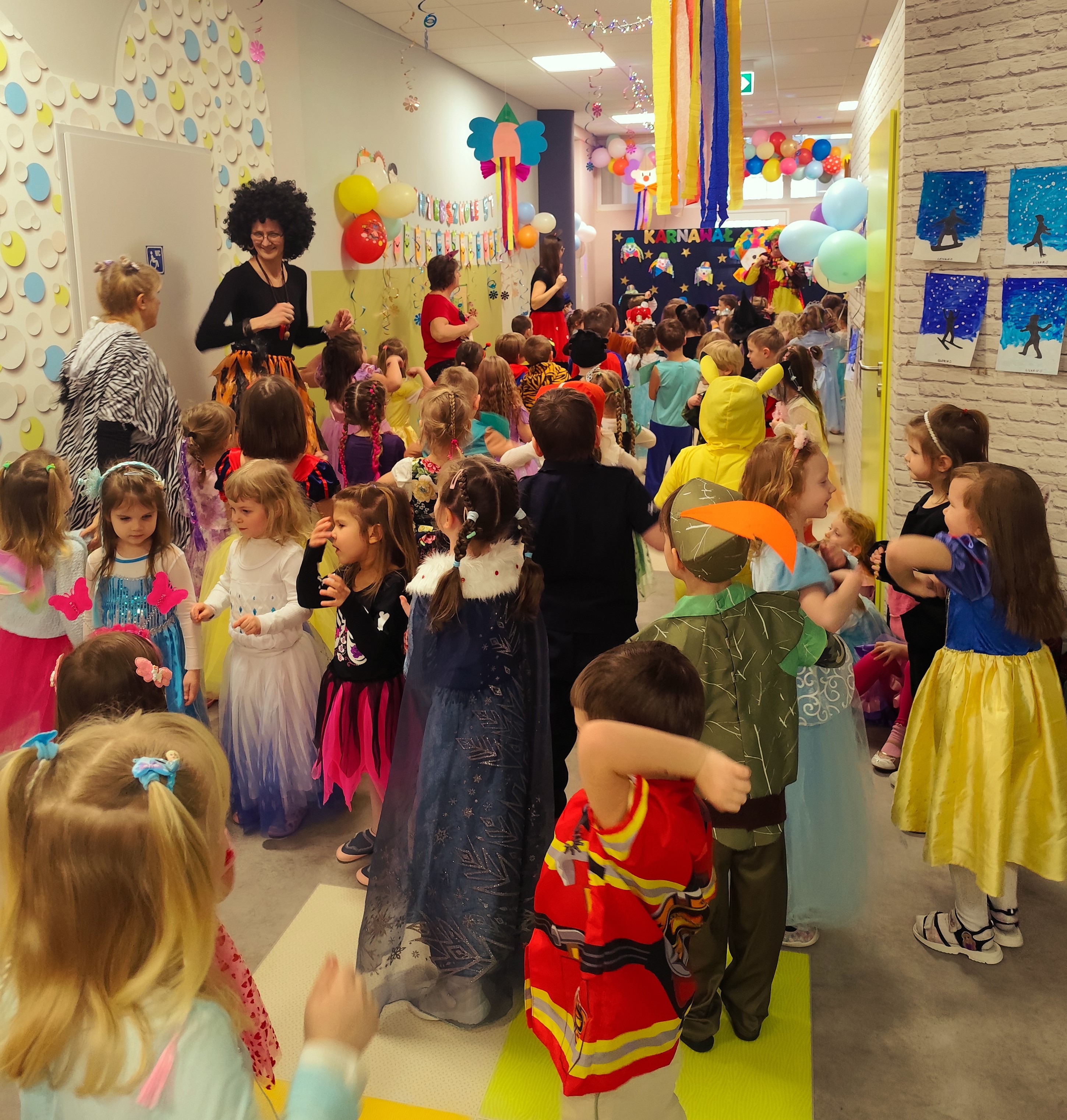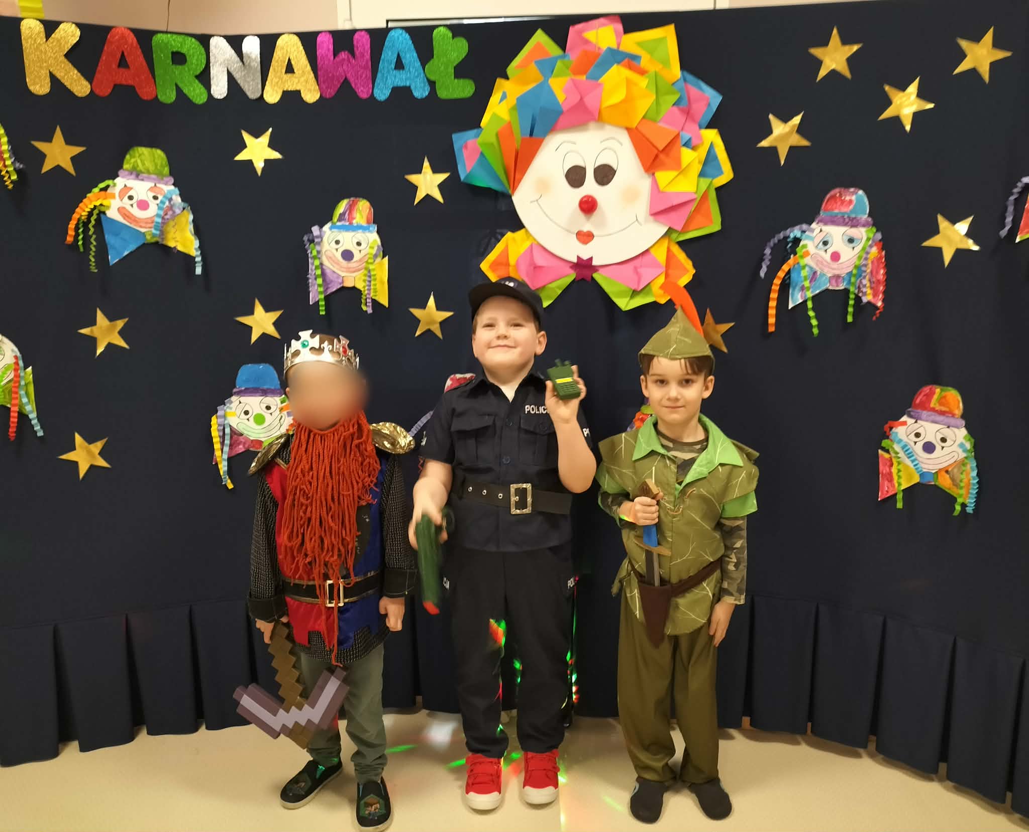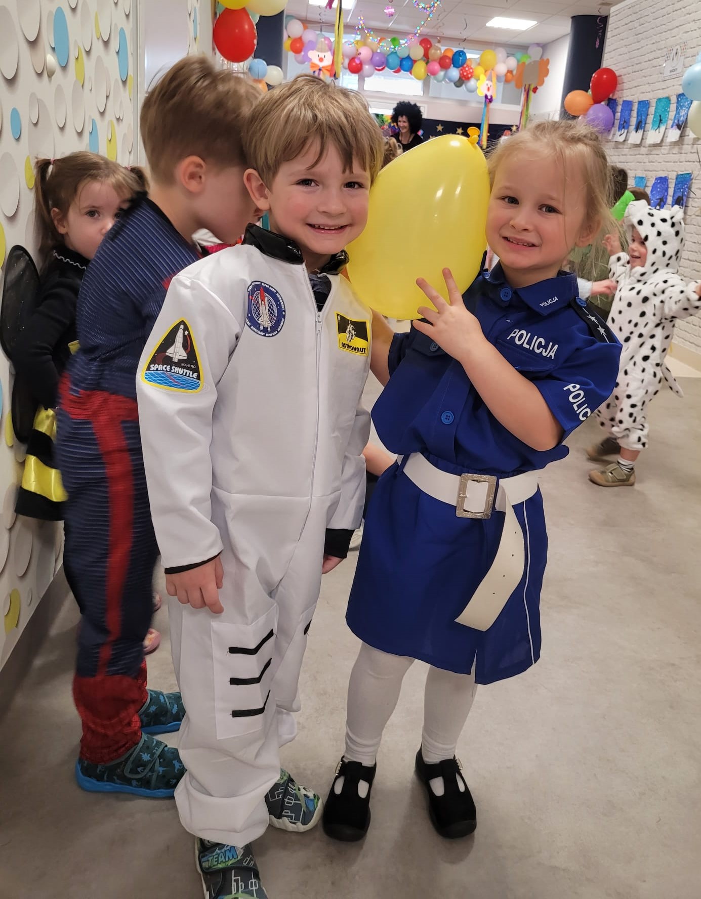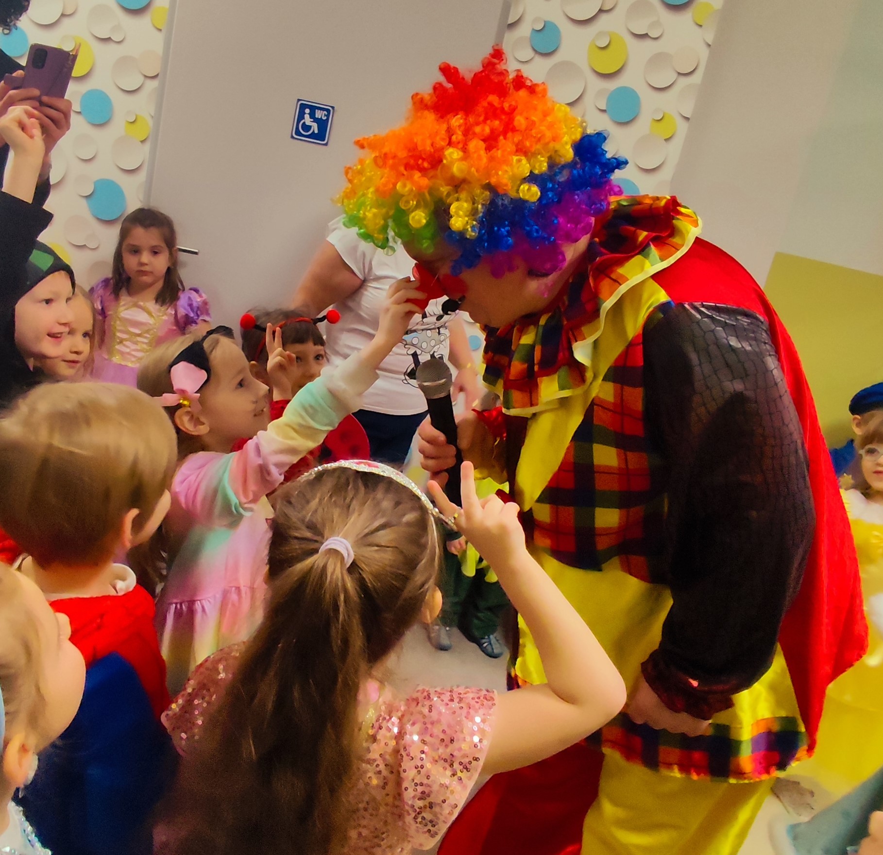 W poniedziałek, 9 lutego, w naszym przedszkolu odbył się bal karnawałowy, który przebiegł w radosnej i uroczystej atmosferze. Wydarzenie poprowadził Pan Artur Kochański - Firma Lokomotywa, zapewniając dzieciom bogaty program obejmujący tańce, zabawy integracyjne oraz konkursy. Dużą atrakcją były efektowne bańki mydlane, które dostarczyły uczestnikom wiele radości. W krótkiej przerwie na dzieci czekał poczęstunek.