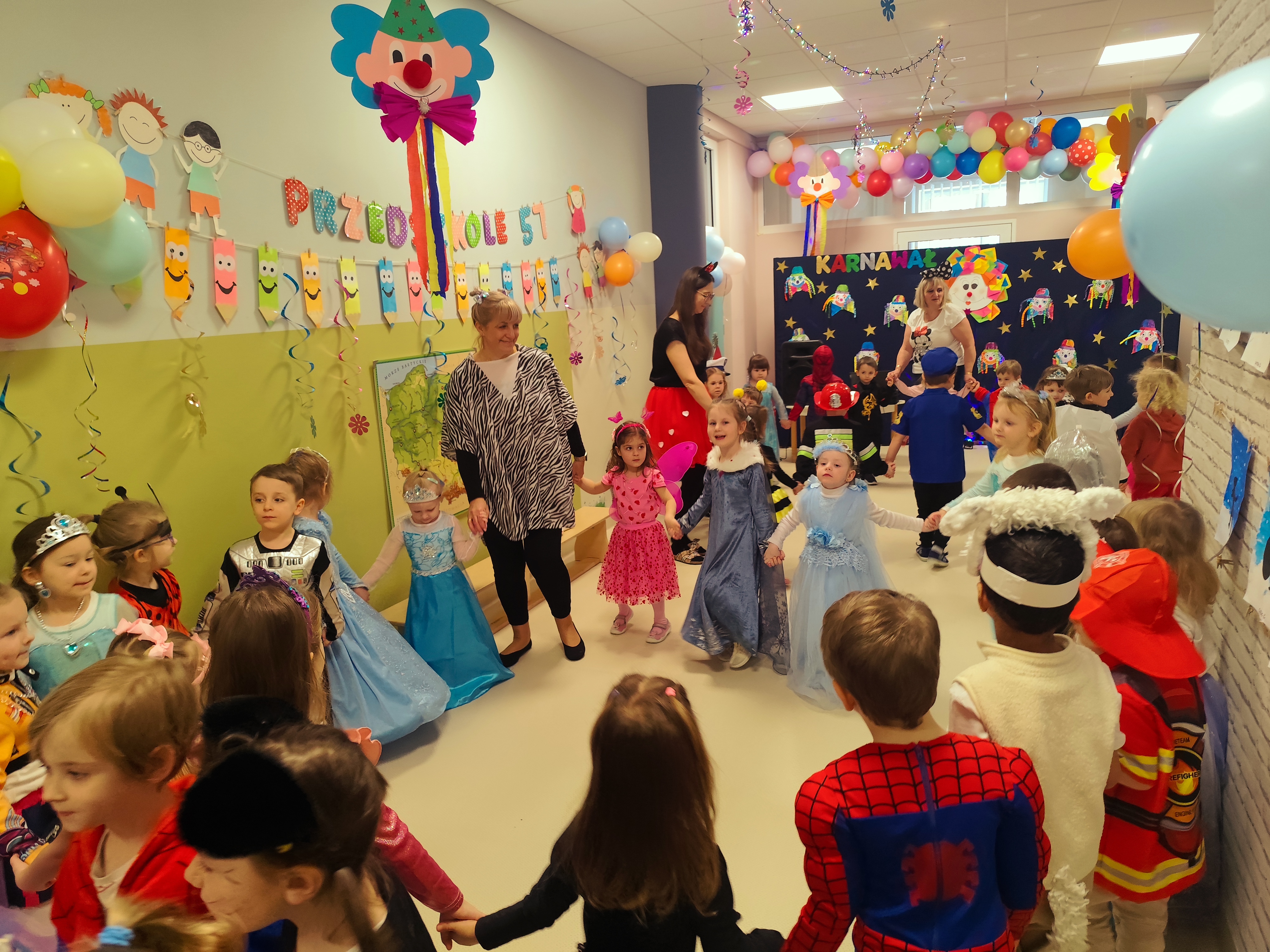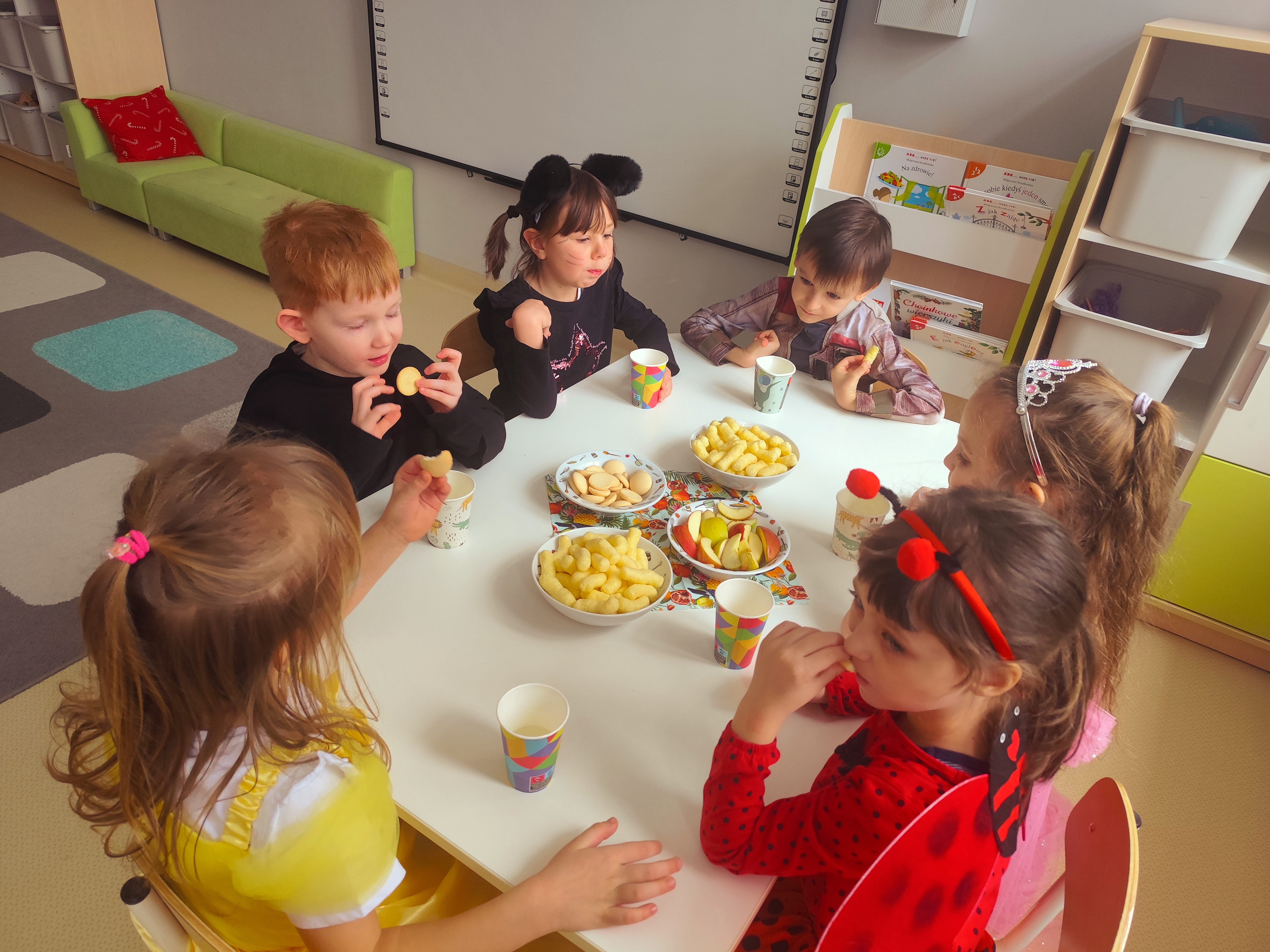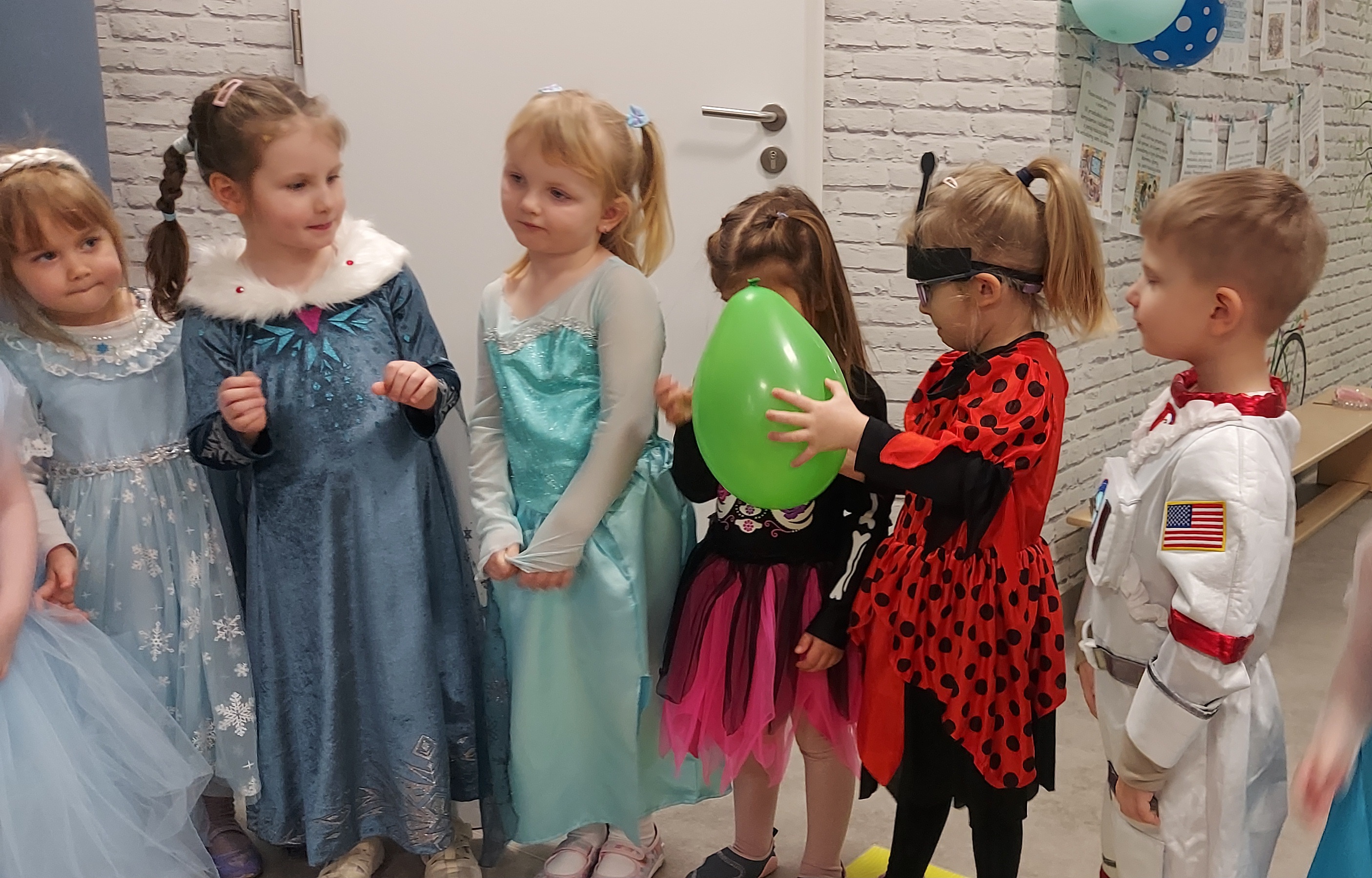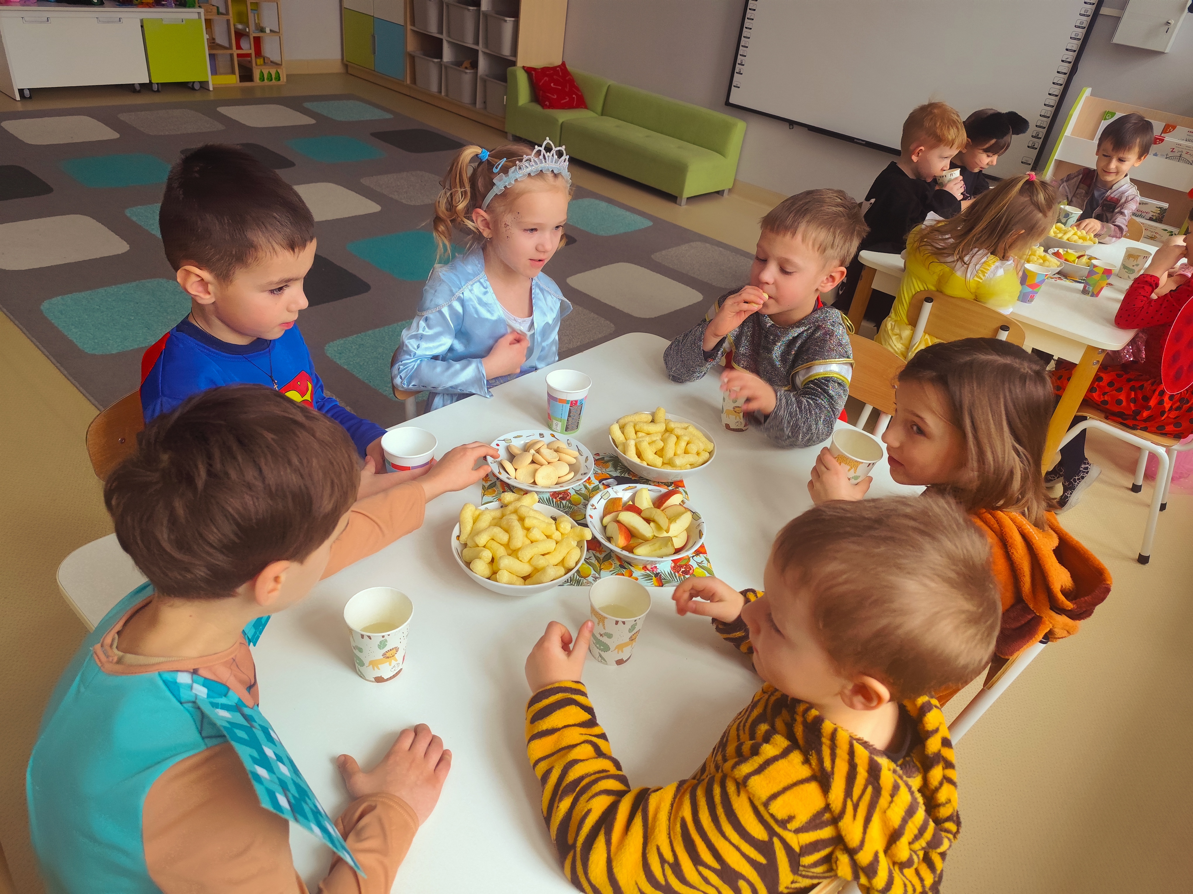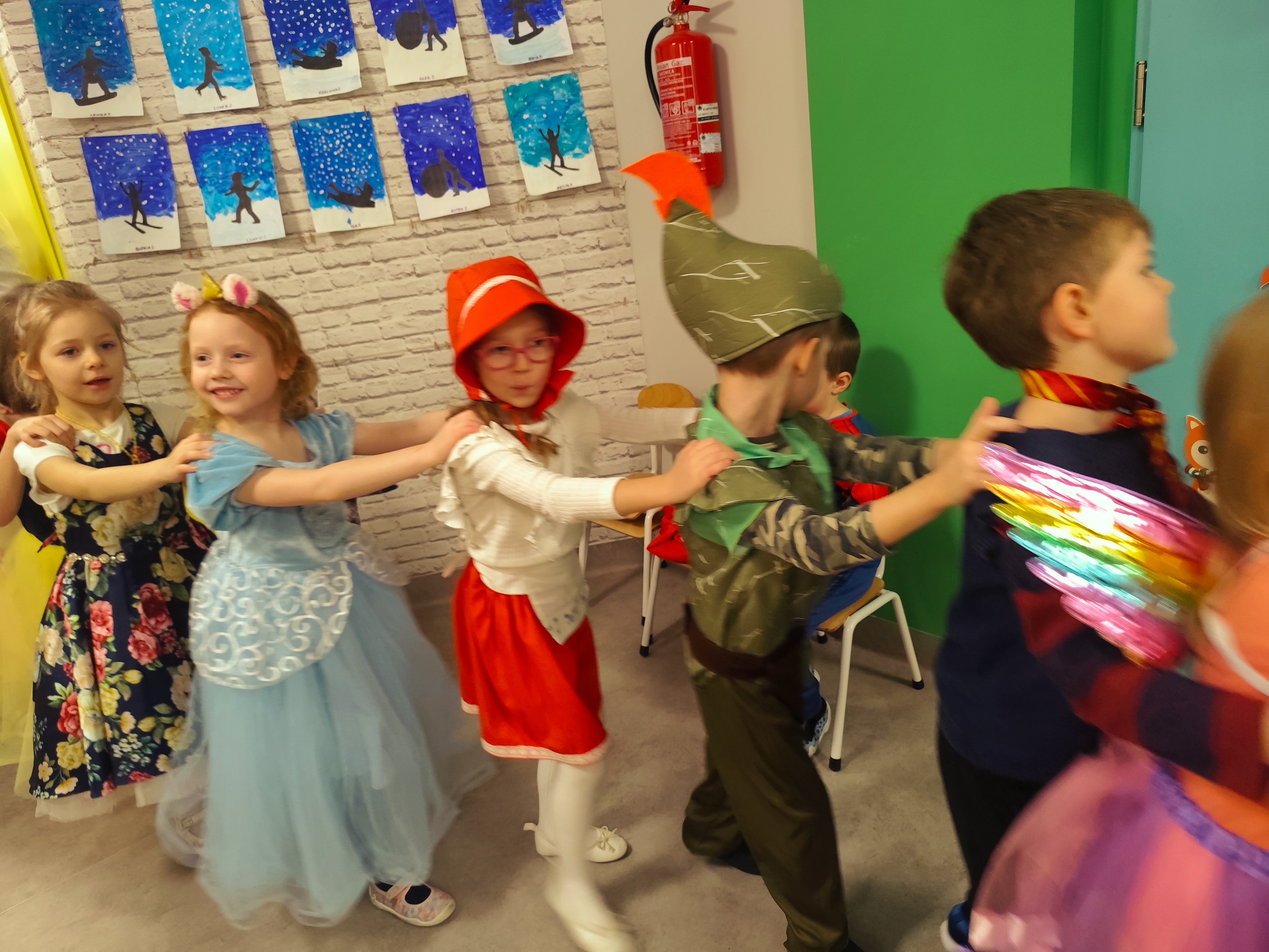 W poniedziałek, 9 lutego, w naszym przedszkolu odbył się bal karnawałowy, który przebiegł w radosnej i uroczystej atmosferze. Wydarzenie poprowadził Pan Artur Kochański - Firma Lokomotywa, zapewniając dzieciom bogaty program obejmujący tańce, zabawy integracyjne oraz konkursy. Dużą atrakcją były efektowne bańki mydlane, które dostarczyły uczestnikom wiele radości. W krótkiej przerwie na dzieci czekał poczęstunek.