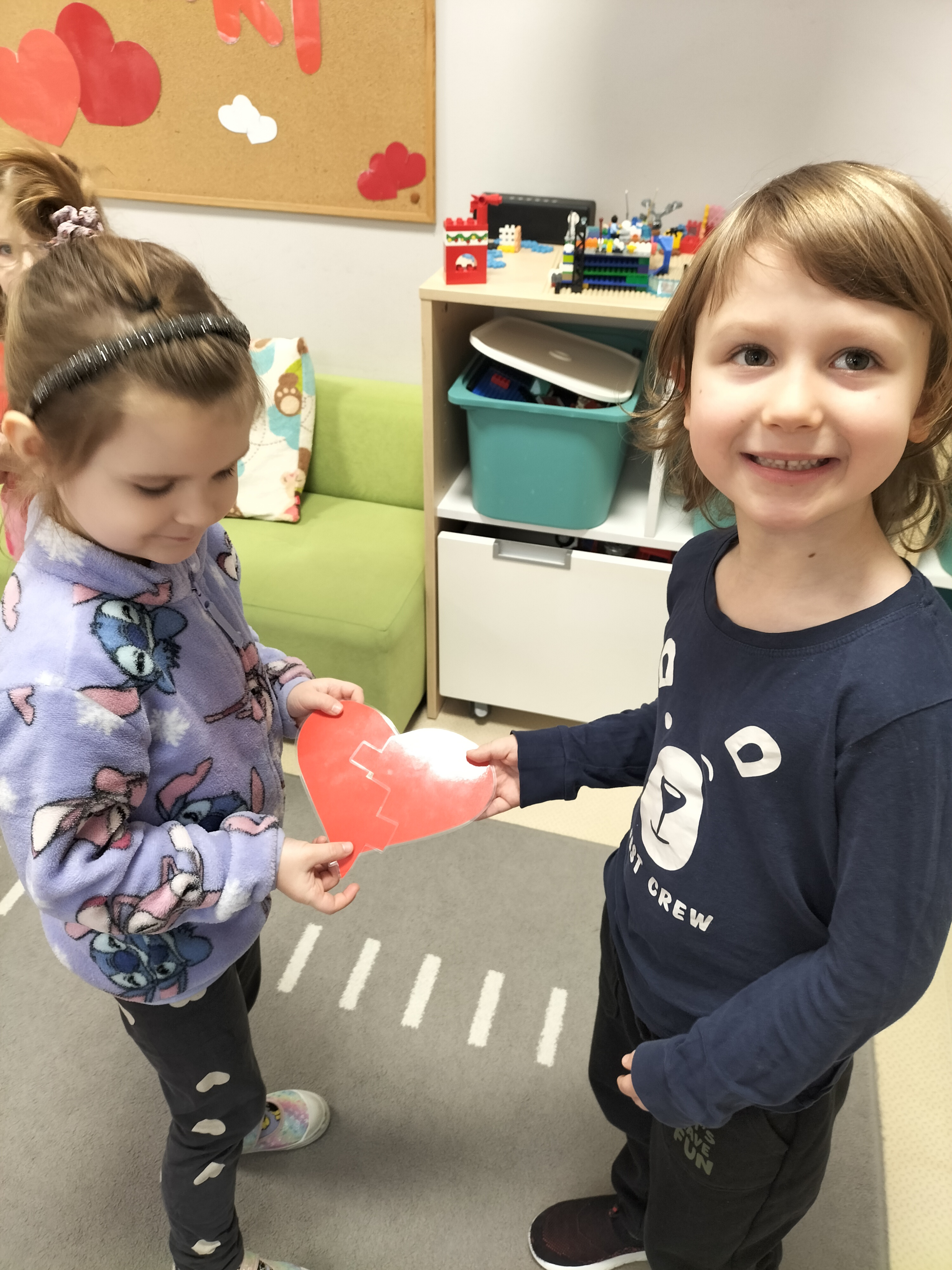 Elfy i Świetliki obchodziły dzień św. Walentego również we własnych salach. Nie zabrakło zabaw językowych, matematycznych, logicznych, pamięciowych oraz ruchowych. Atmosfera była bardzo przyjazna i pełna uśmiechów. Takie święto pozwala dzieciom wyrażać emocje i uczyć się wartości takich jak współpraca, empatia i szacunek dla innych.