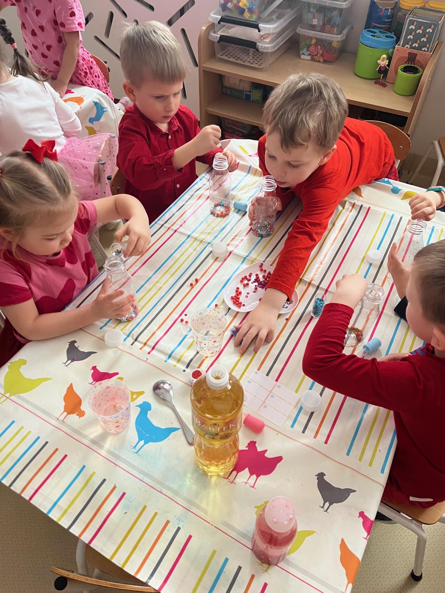 W miniony piątek w grupie Leśne Ludki odbyły się „ Walentynkowe warsztaty sensoryczne”, które zorganizowała Pani Weronika - Mama Nadii❤️ Przedszkolaki wykonały sensoryczną butelkę pełną „miłości” . Warsztaty sprawiły dzieciom wiele radości , przedszkolaki po raz kolejny mogły wykazać się kreatywnością i współpracą . Pani Weronice bardzo serdecznie DZIĘKUJEMY ❤️ i zapraszamy ponownie ?