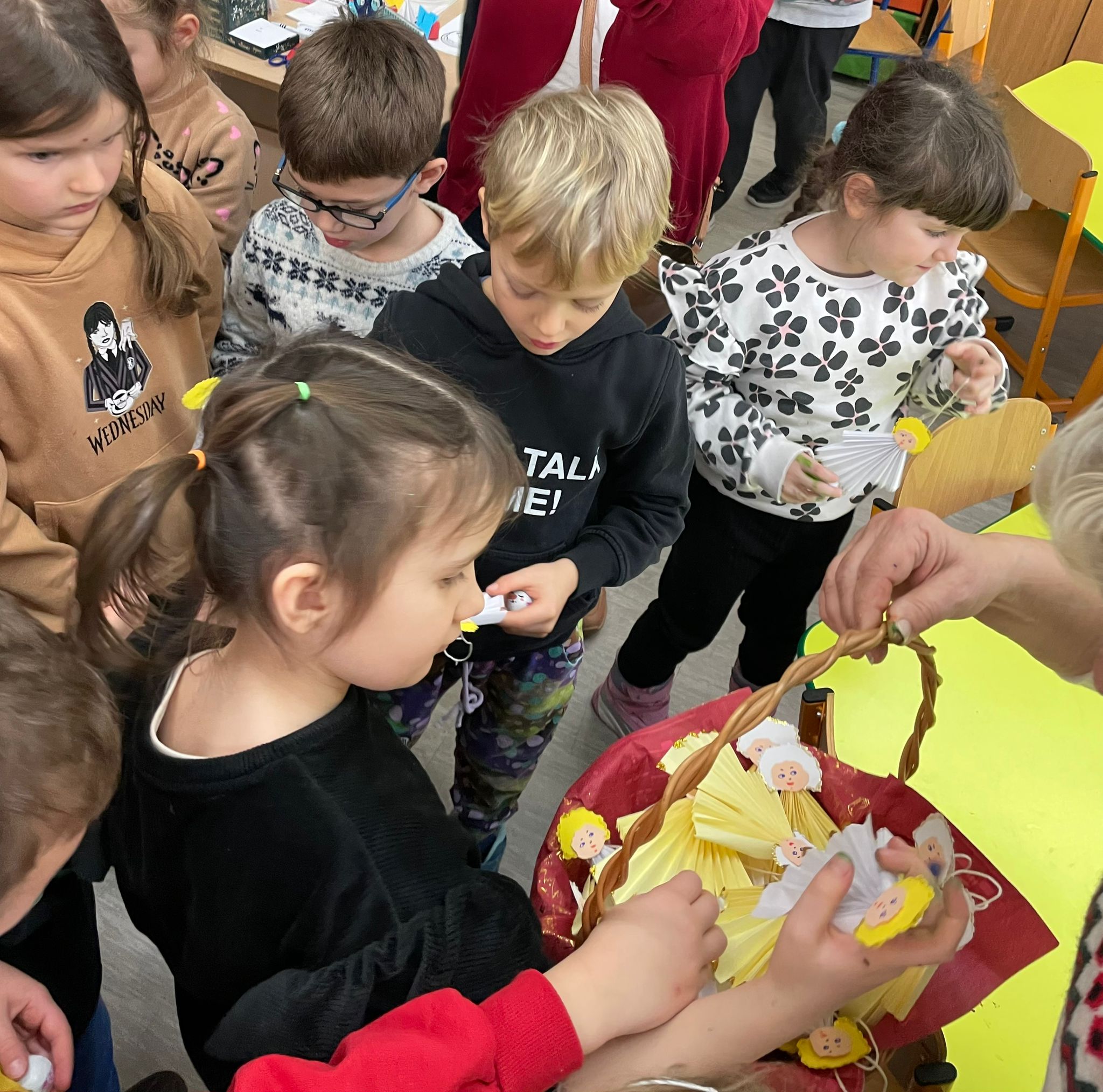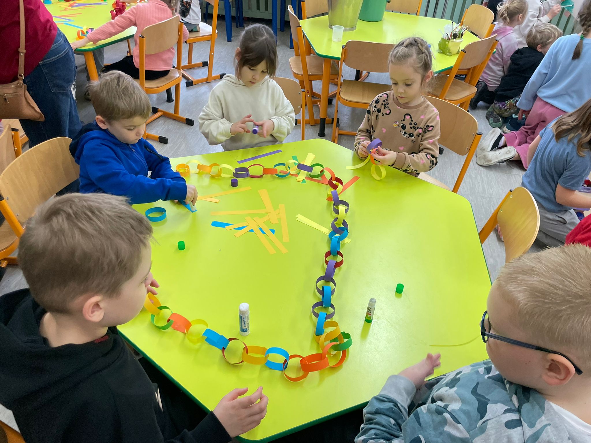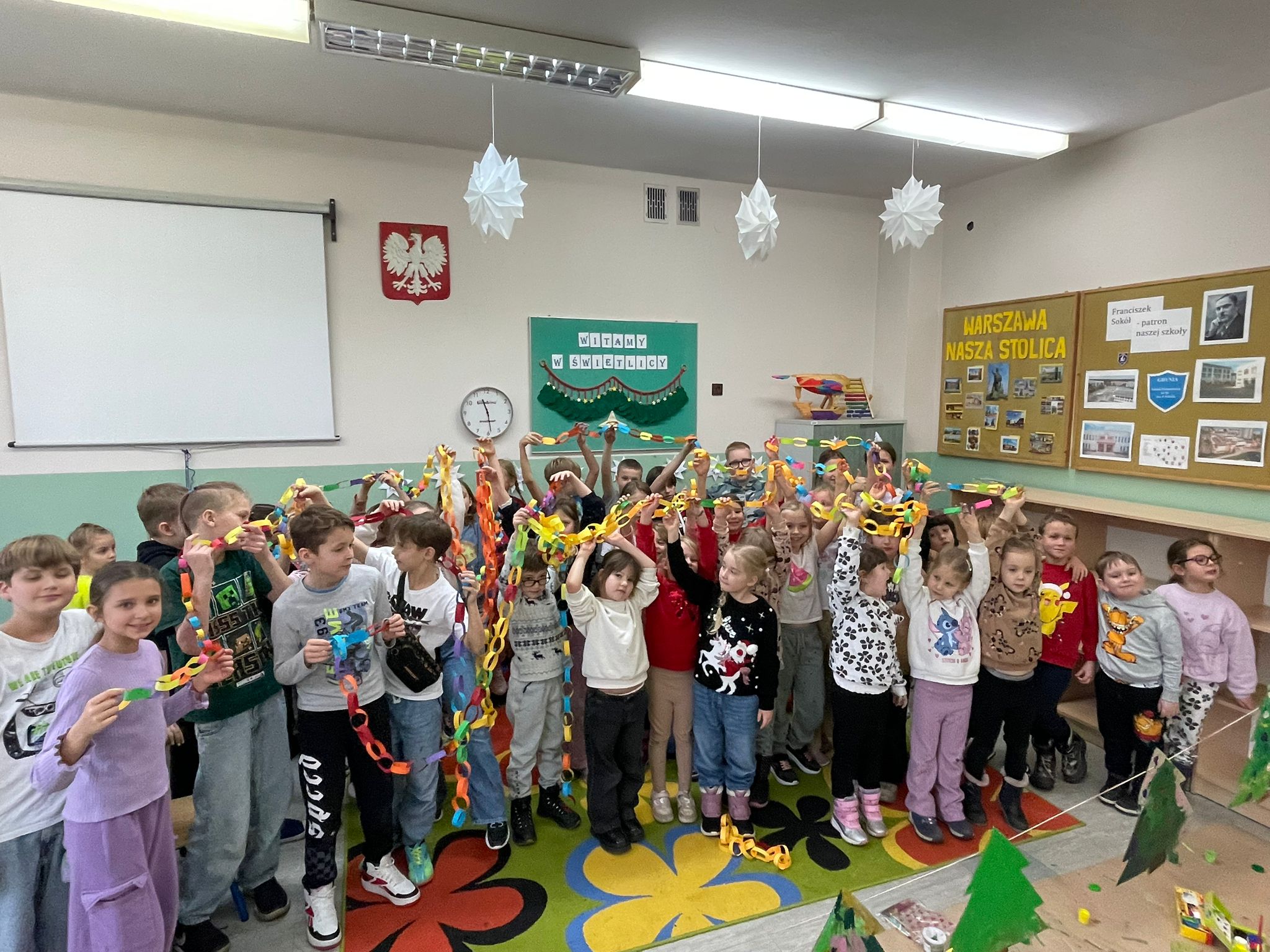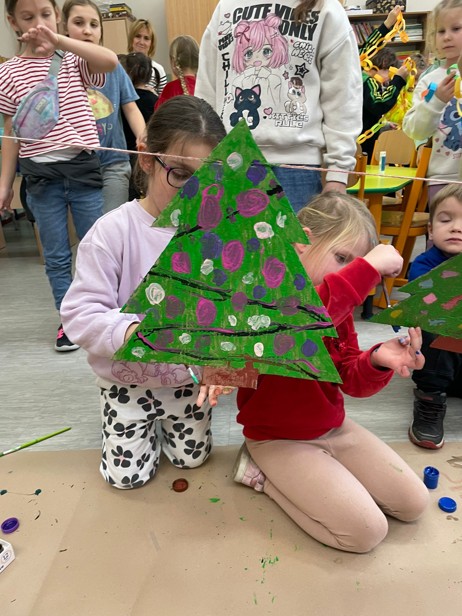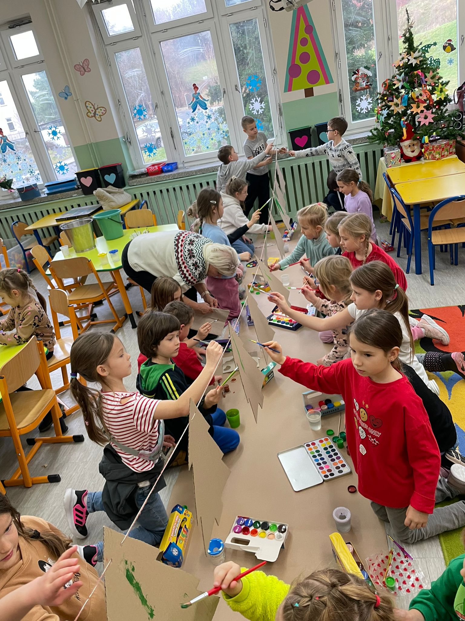 Po raz kolejny grupa przedszkolaków odwiedziła naszą szkołę, aby wziąć udział we wspólnych warsztatach świątecznych razem z uczniami klasy 3a. Dzieci z dużym zaangażowaniem tworzyły świąteczne ozdoby oraz integrowały się ze starszymi kolegami i koleżankami.