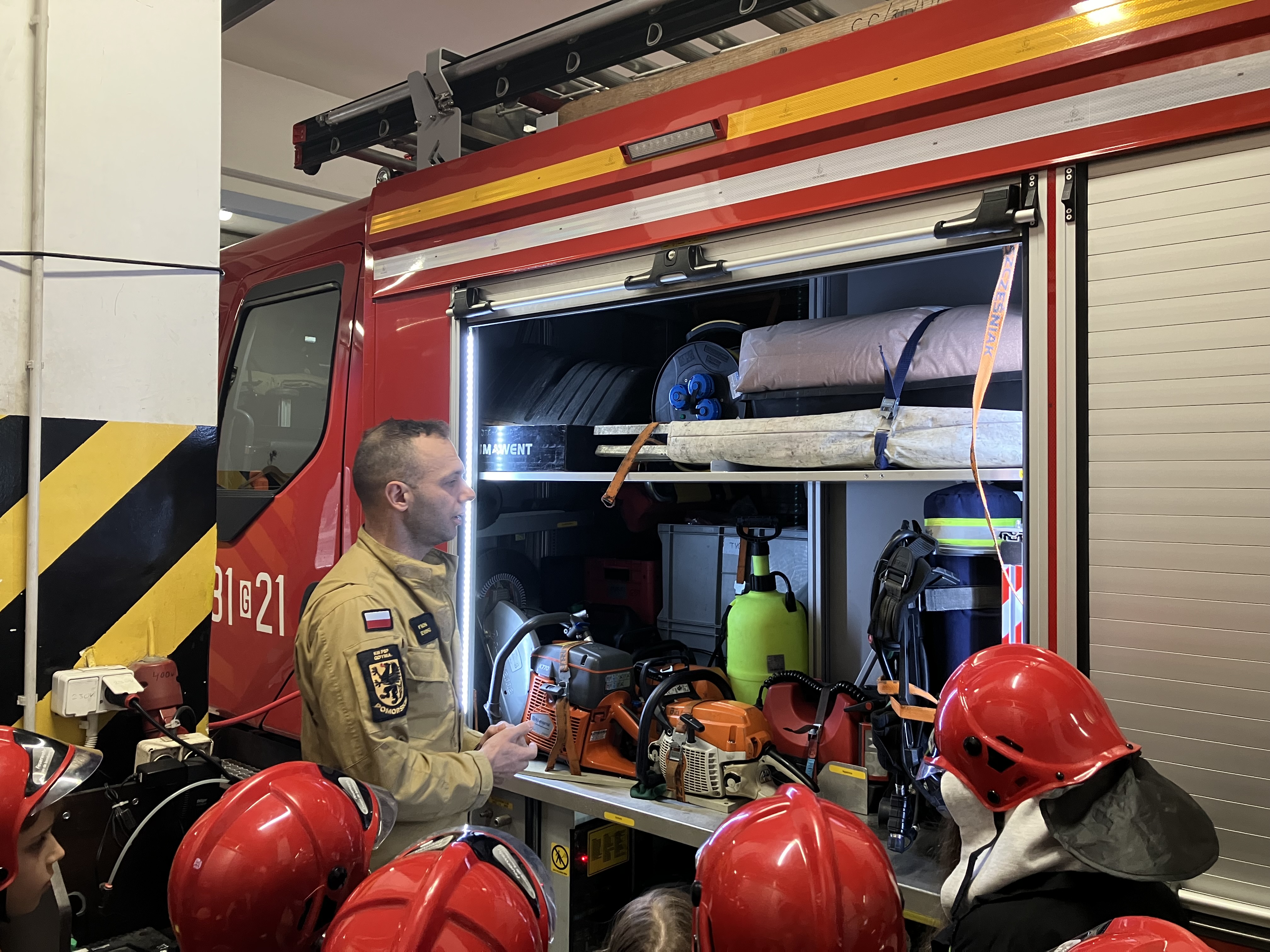 Uczniowie klasy 3b odwiedzili dziś salę edukacyjną „Ognik” w Miejskiej Komendzie Straży Pożarnej w Gdyni. Podczas zajęć dzieci przypomniały sobie zasady bezpiecznego korzystania z urządzeń elektrycznych, dowiedziały się, jak prawidłowo powiadamiać służby ratunkowe oraz jak reagować w sytuacjach zagrażających zdrowiu i życiu.
