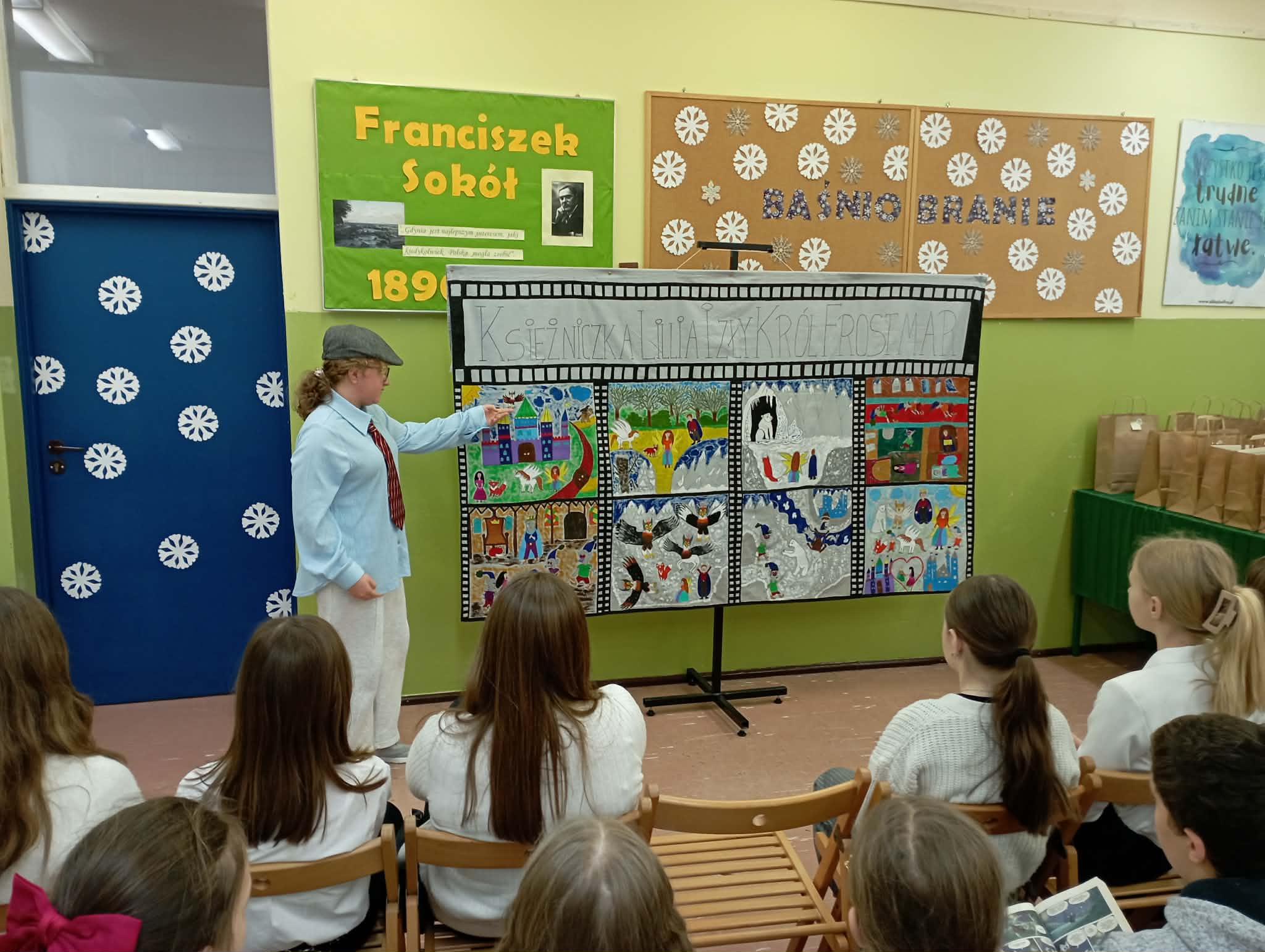 Słowa uznania należą się również śmiałkom, którzy wystąpili na żywo w Teatrze baśni i opowiedzieli swoje autorskie baśnie, wykorzystując drobne elementy scenografii oraz talenty aktorskie. To wyzwanie podjęły w tym roku trzy odważne uczestniczki, wśród nich Julia P. z klasy 6a. Brawo!