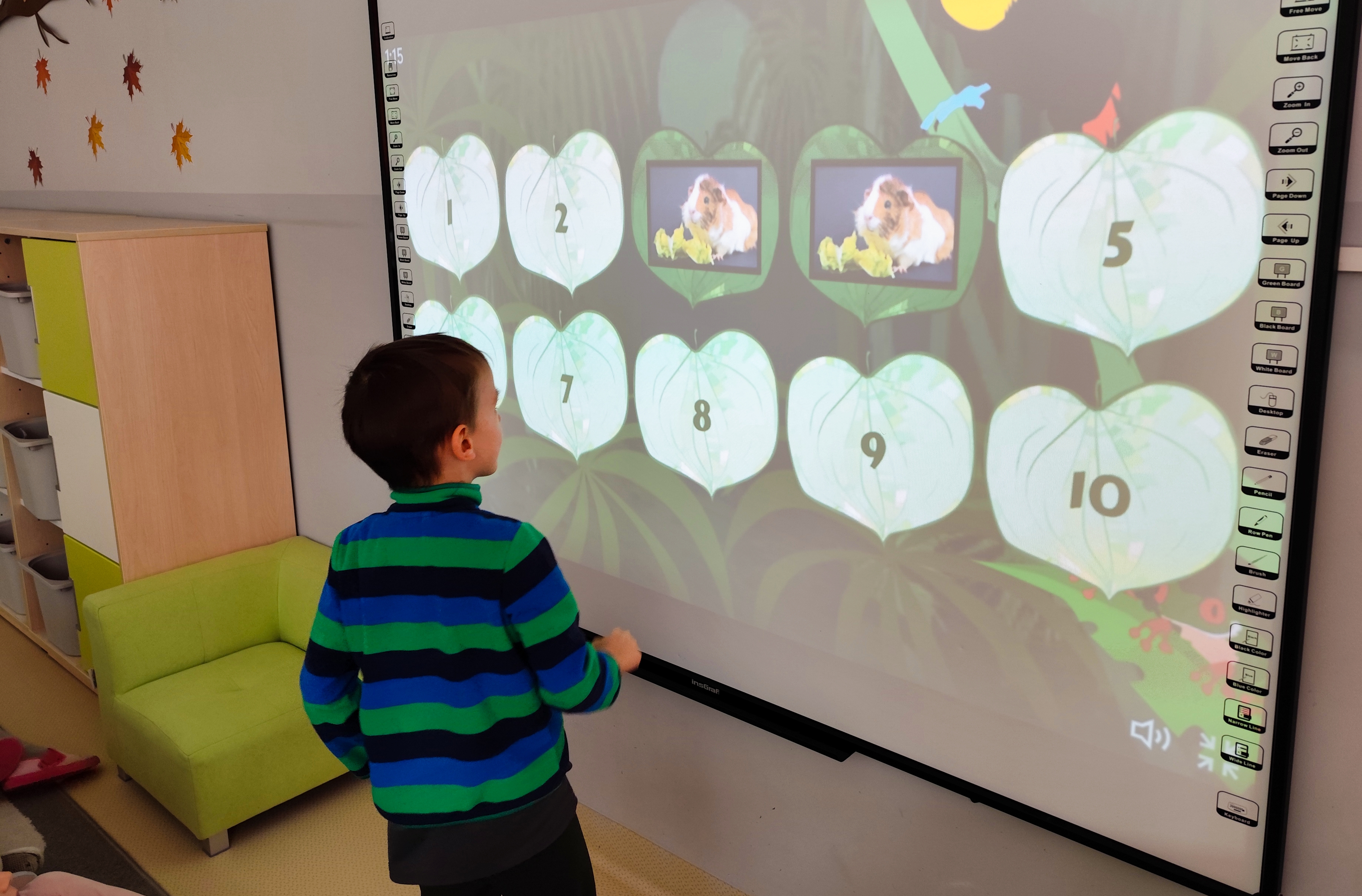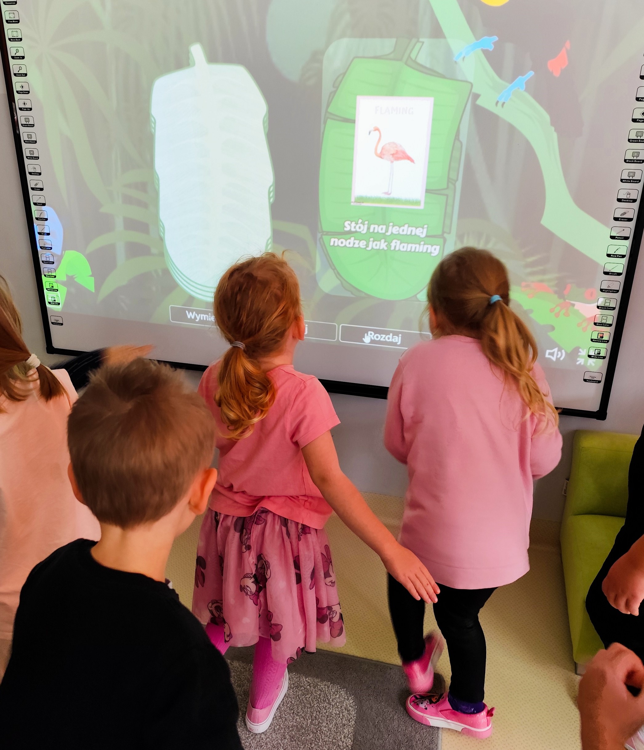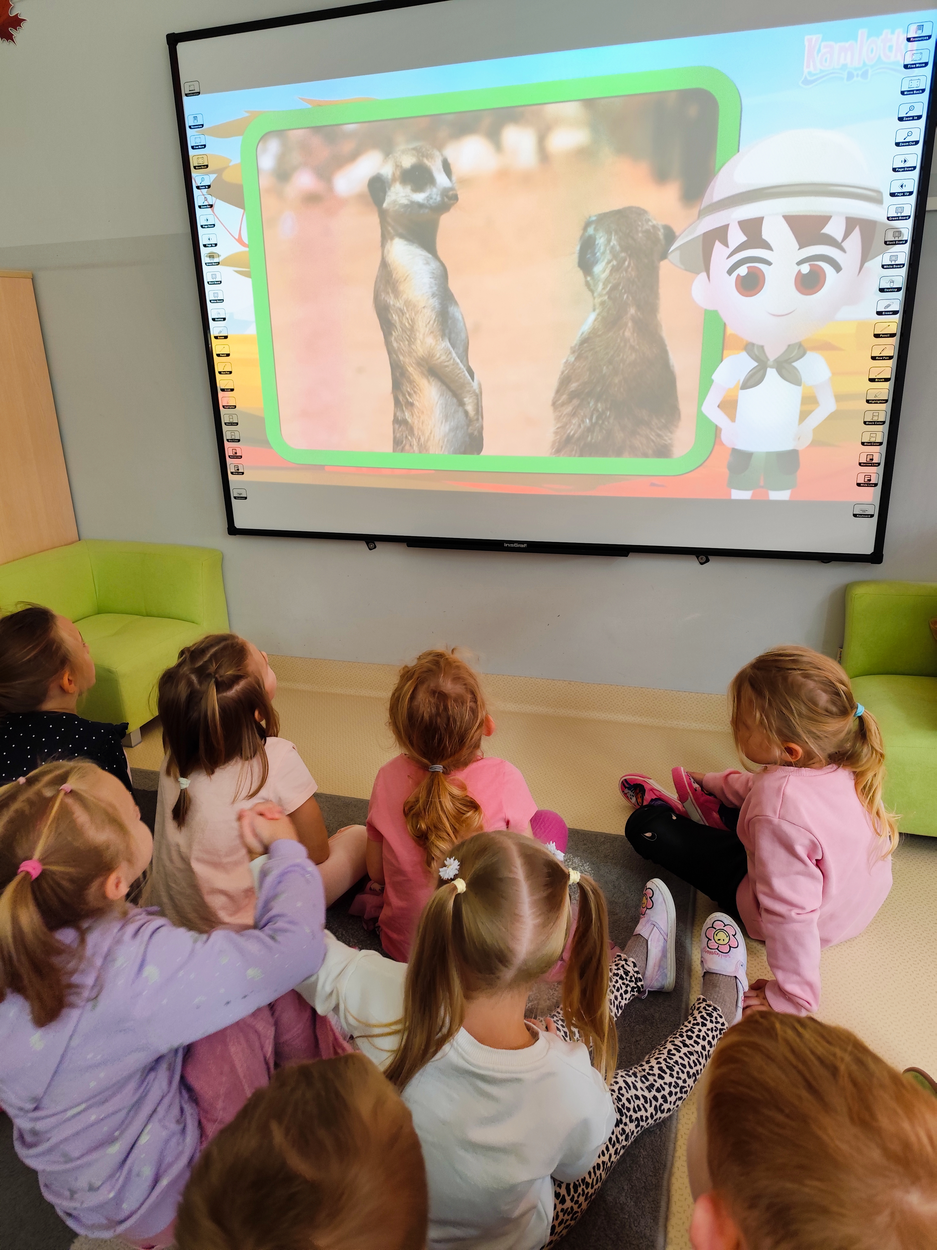 Świetliki dziś na zajęciach korzystały z tablicy multimedialnej. Dzieci grały w memory, dopasowywały zwierzęta egzotyczne a także ćwiczyły dużą motorykę naśladując zwierzątka. Radości było co niemiara.